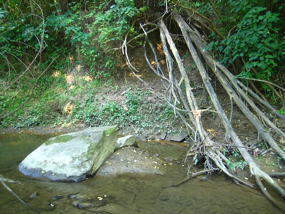 An old motor found in Blue Mountain Creek just upstream from its mouth. I followed this creek for maybe 100-150 yards to a deeper pool fronting a wide culvert underneath a highway, but decided not to go any further in that direction.