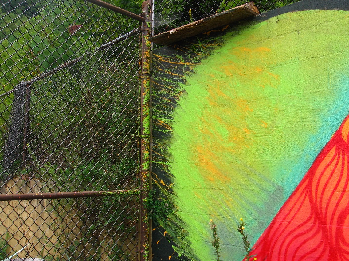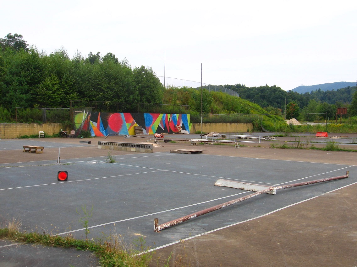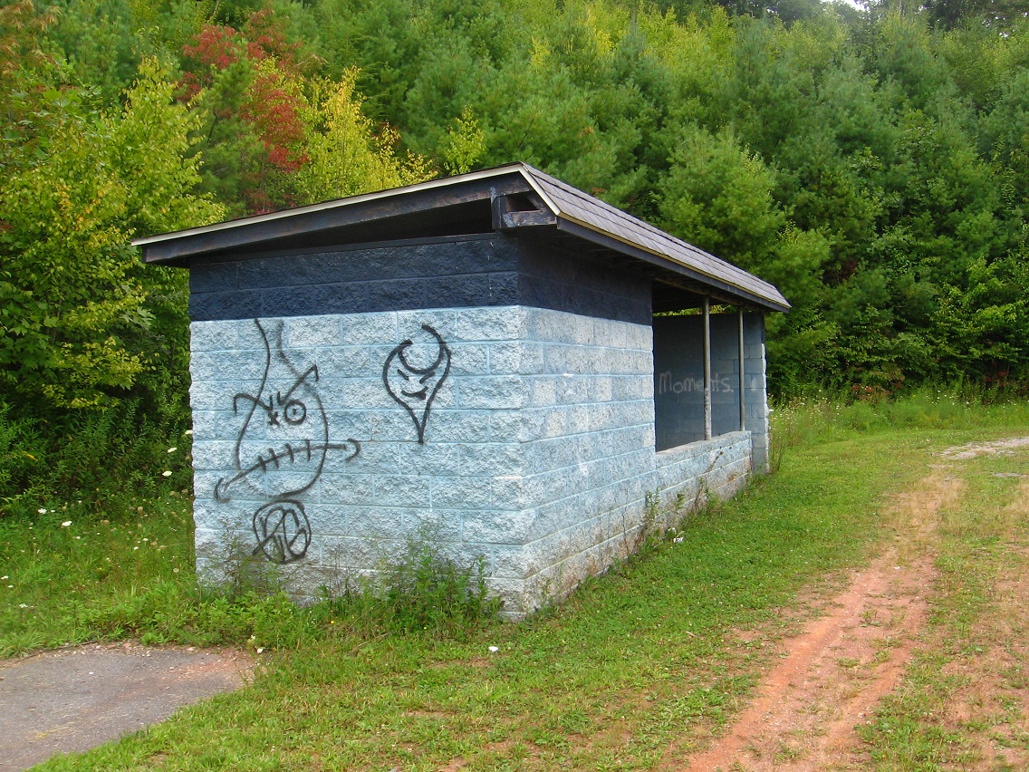 At the spot I crossed both days this weekend we have a wedged barrel and a yellow chair on the near side or Blue Mountain Urban Landscape side.