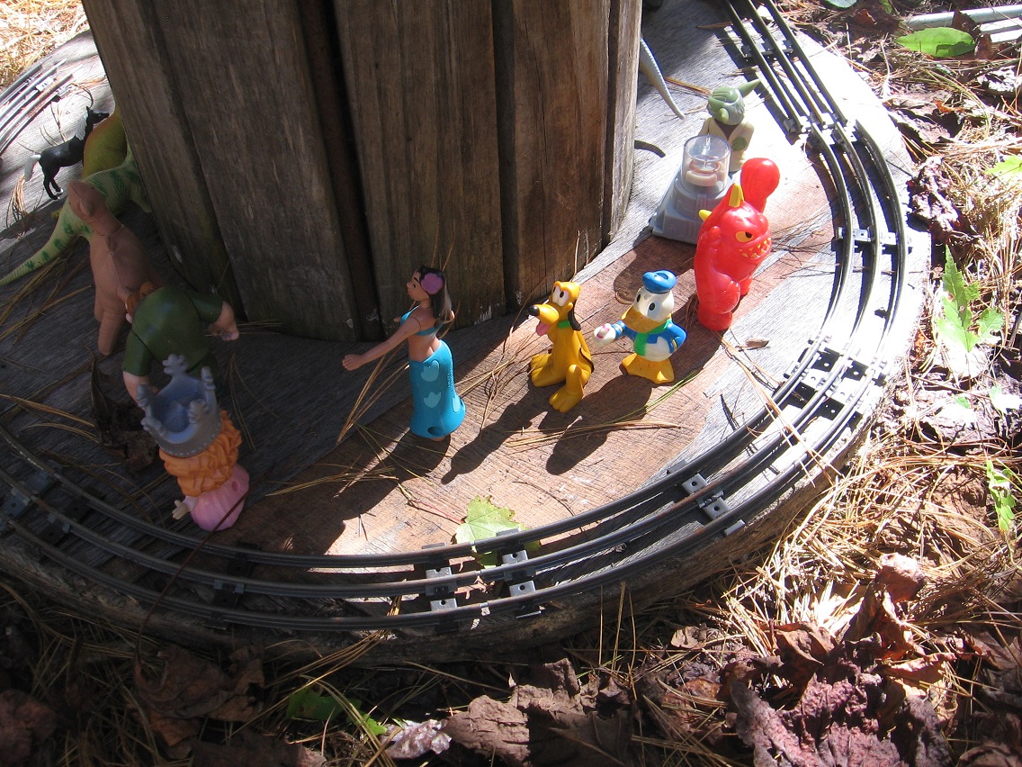 “All the washers, bolts and nuts on it come from the football stadium stands. Then the smooth white rocks [on the spool table] were found on the track surrounding the football field. I think I just need to take more pictures of Bigfoot. Hold on…