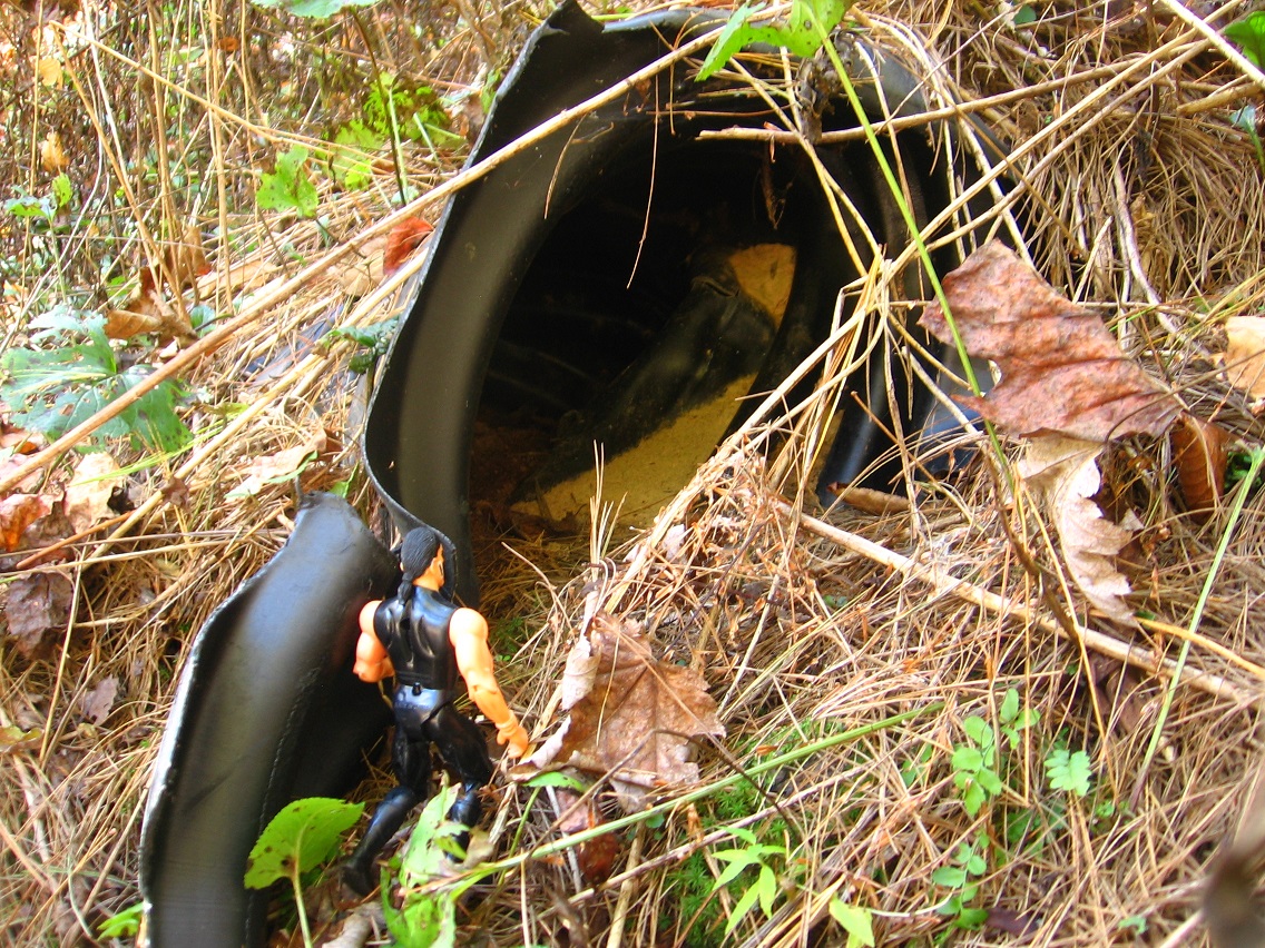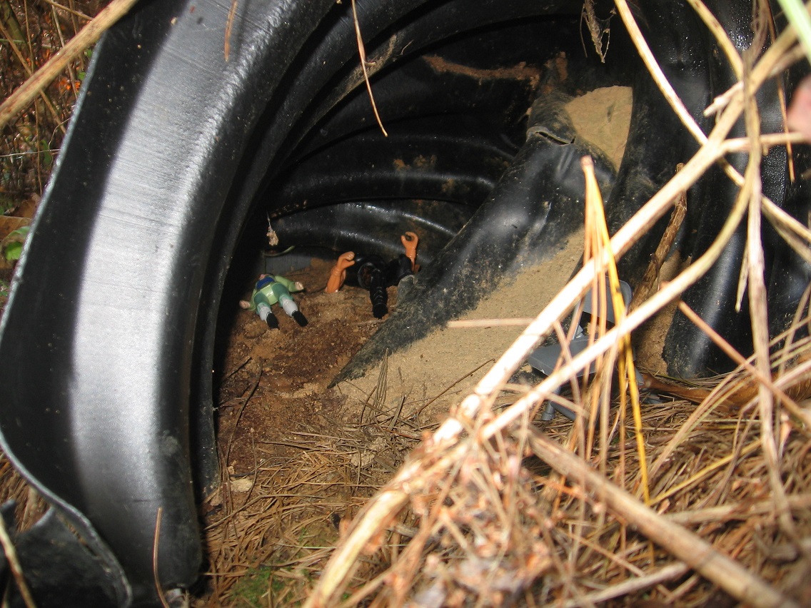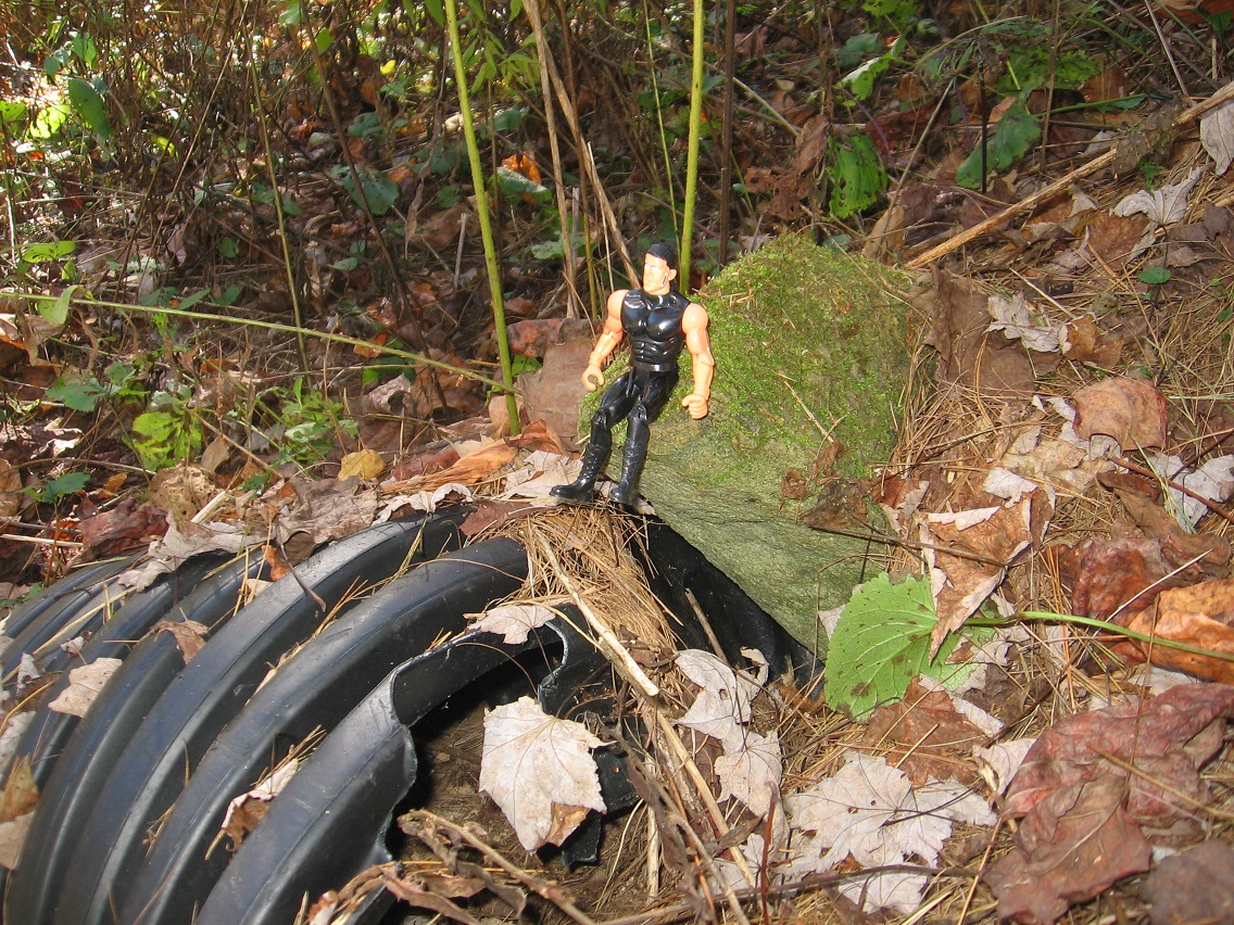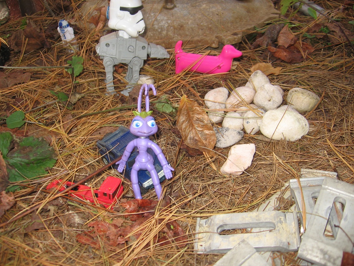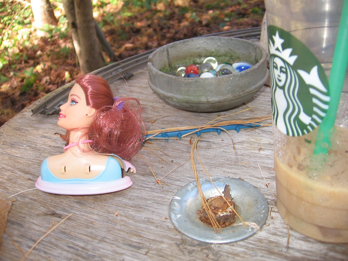 While Taum Sauk was busy on his exploring trip, I dismantled the marble race track and also packed away all the Bigfoot toy avatars into my satchel, leaving only Taum’s friend Empty Promises behind. He plans to live in the center of the Spool Table, a winter caretaker for Bigfoot as it were. And I’m sure Taum will be by to visit on occasion when he can burrow out of the snow and make a return trip to the now abandoned town.