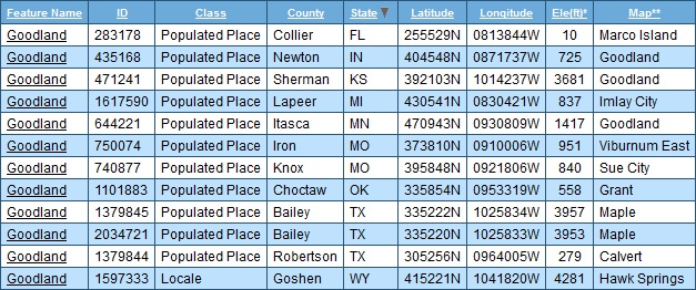 Source: Zimmer, Gertrude M. “Place Names Of Five Southeast Counties Of Missouri.” M.A. thesis., University of Missouri-Columbia, 1944.Place name: Goodland
