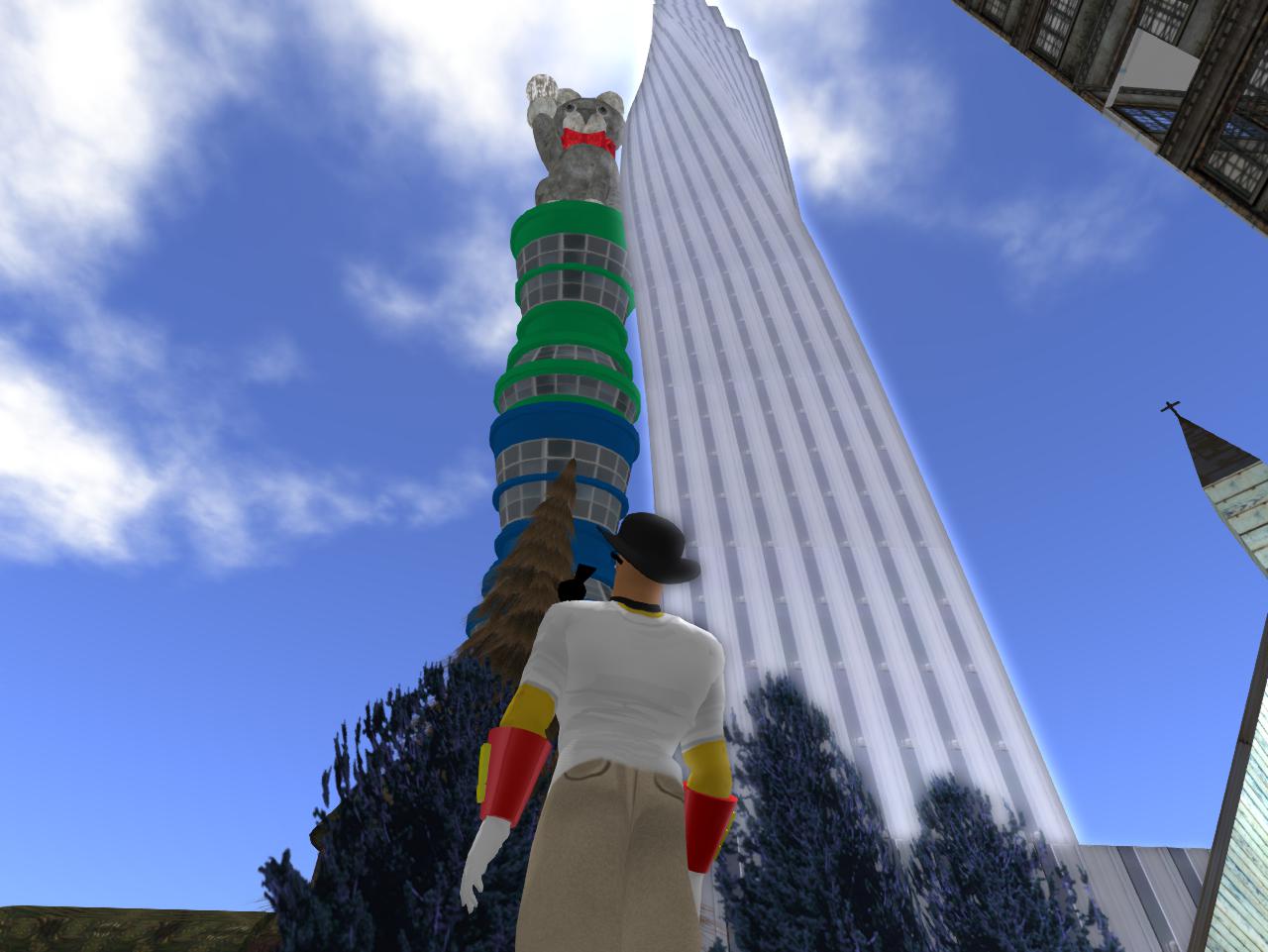 “The tower of Shiny Hare is a reason for the town to keep existing,” he continued. “Baker Bloch’s ‘Uncle Meatwad’ is a reason. The budding love of youngsters Cardboard Derek Jones and Lisa The Vegetarian Simpson is as good a reason as any. I’m all for true love. But in my heart of hearts, I still think the cons outweigh the pros. The town is too expensive to run. Even with the oh so handy prim to convex hull conversion to decrease land impact.”