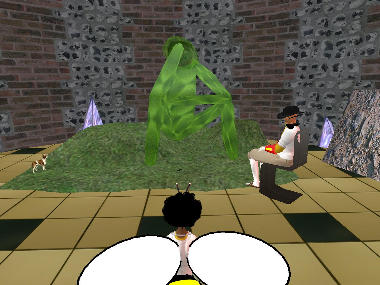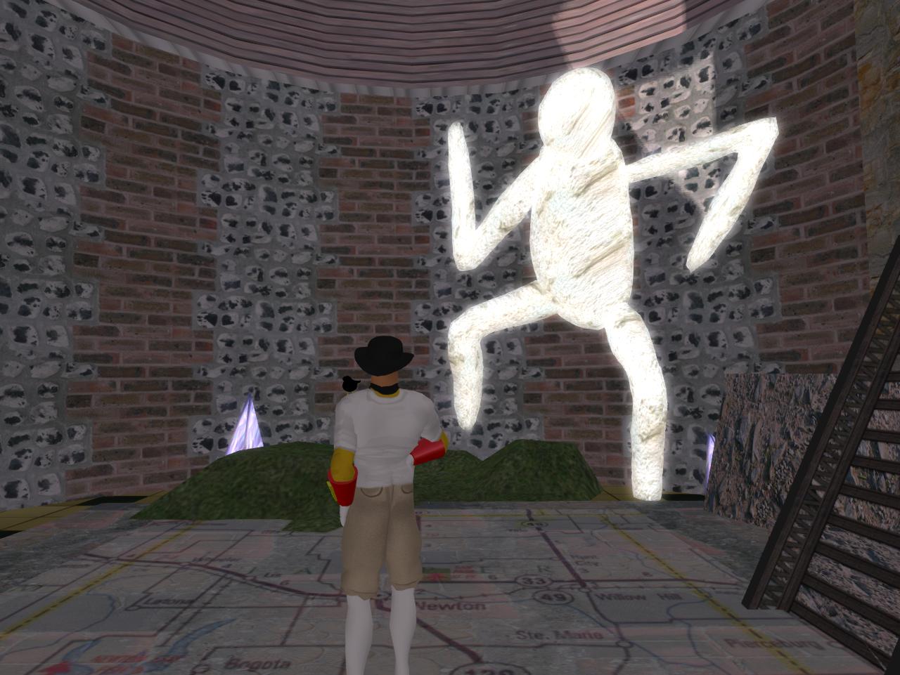 He’s determined a place that the town could be destroyed. In the bigger picture, he doesn’t see the worth in it. He would point to not the *violence*, the misogeny, the *overlay* of Grand Theft Auto but, removing all that, just the *landscape*. Second Life is beyond dated. Yet you can still create galleries here. Once you can create galleries in another spot and build up another mythology you can begin to exit. But only at that point. When you die from Second Life, however, you die, because you can’t take it with you, and that includes Baker Bloch and all the rest of the avatars. Including me.