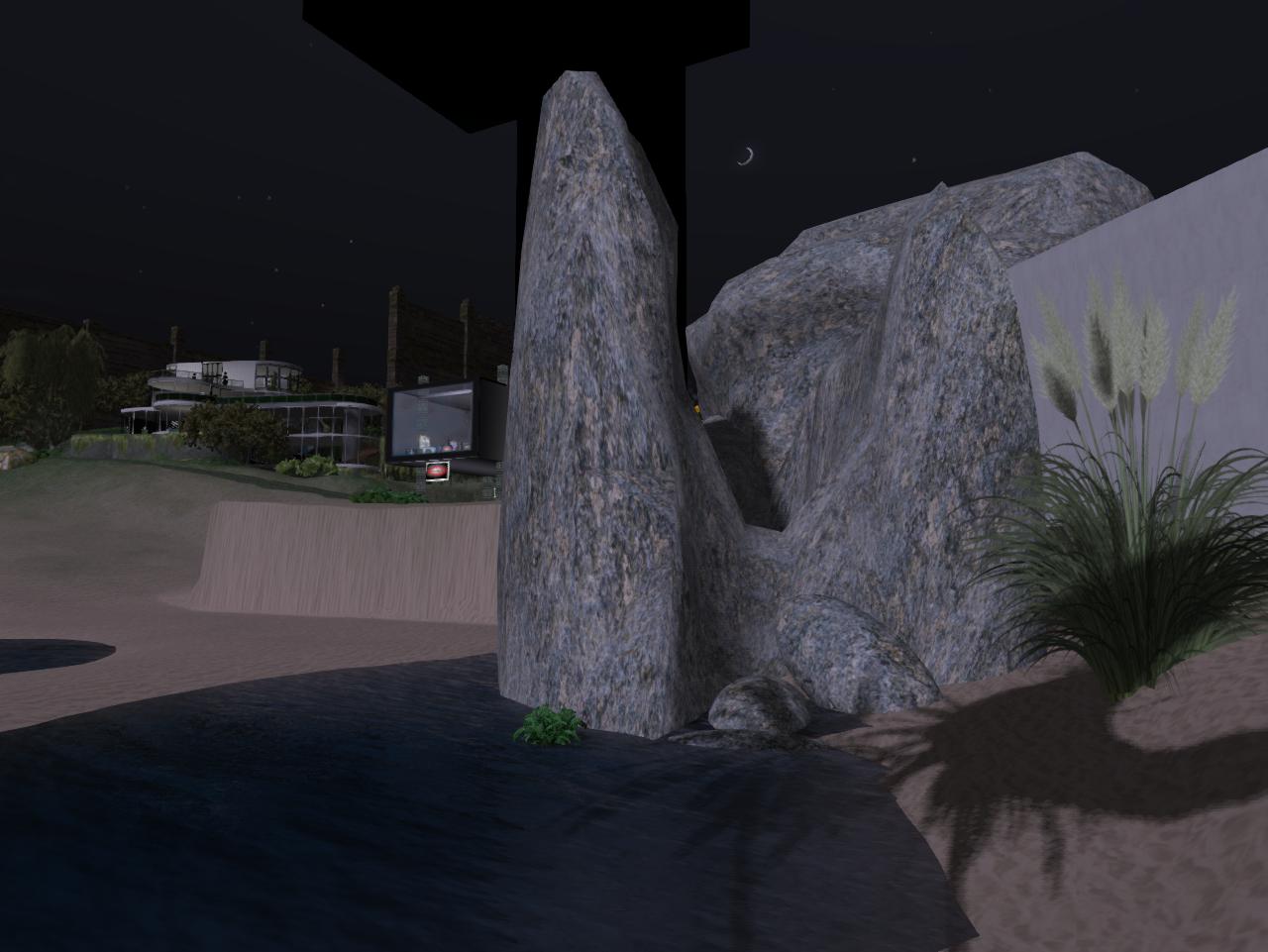 Another cat I *did* know about before advertises the involved parcel next to Route 14. And as I’m now recalling, about 3 1/2 years back, when I first really explored the sims around Jorondip that I now call BoB, I ran into a posse of cats somewhere near here, but not from Quito’s bunch, since he seemed to have only arrived in the sim the past year and a half according to parcel descriptions. I recorded the encounter in the Baker Blinker Blog at the time. Oh, very nice, I actually dropped a slurl into that post. So it’s right up the hill from the garage, and still on Quito’s land where he just built a nifty roller coaster. So maybe those were Quito’s cats back then as well — seems a little too coincidental that they’re on his land, once more, and since he appears to love cats so much.