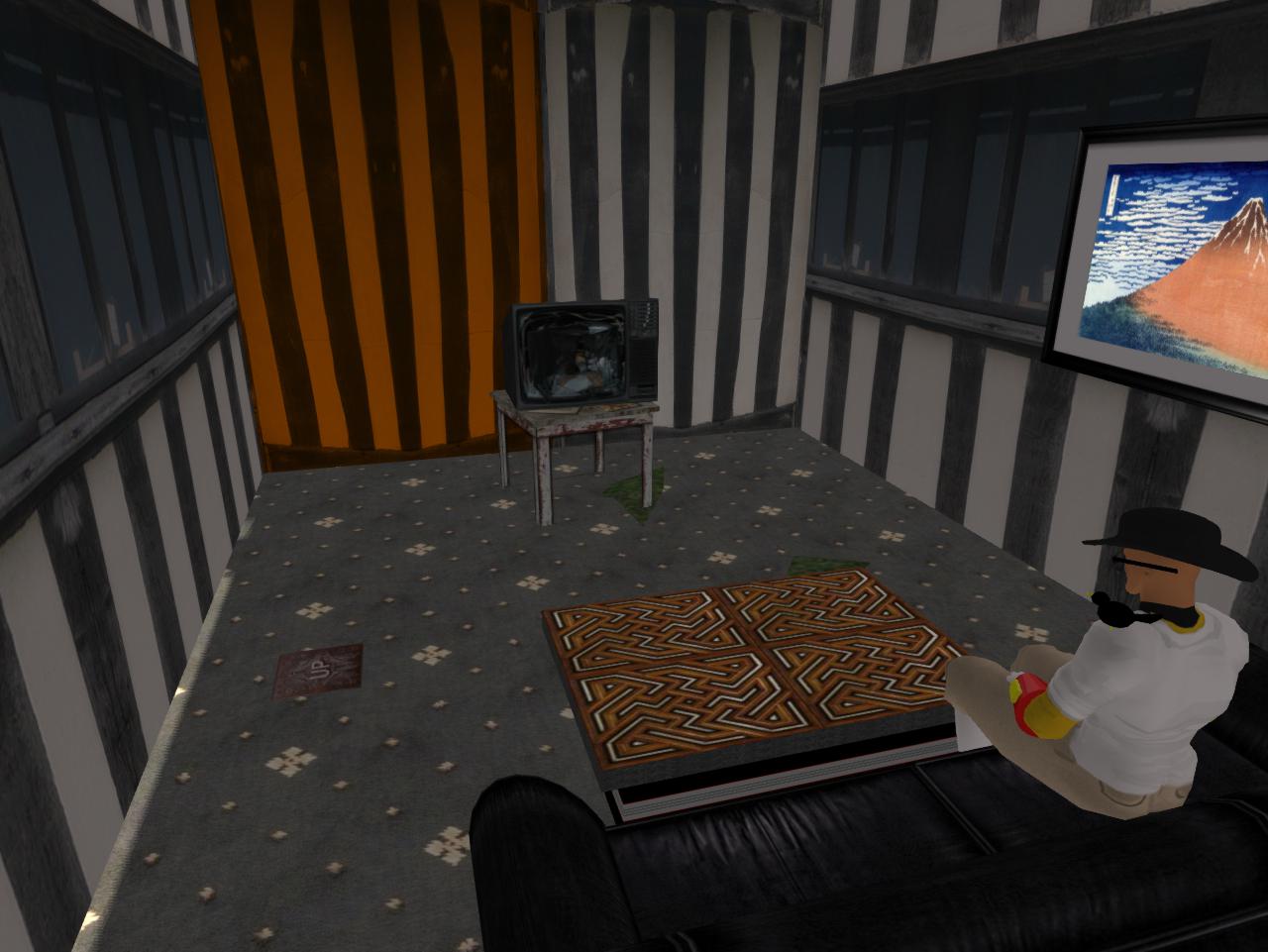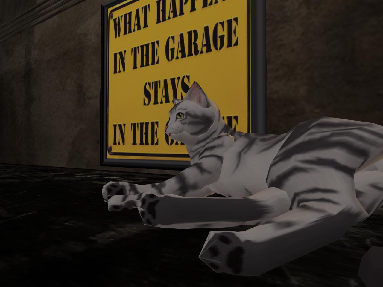 After messing about Home Orange a bit, he decides to teleport over to Jorondip again and see what’s new, if anything. And Jorondip, once more, didn’t disappoint. A *shape* had manifest right beside the centerspot of the sim since the family’s last visit several days back. More correctly, it was a sphere that turned into a cat which kept popping in and out of reality, seemingly. Obvious connections going on with Shroedinger’s famed quantum feline, then, although that association wasn’t intended by whoever placed it here in all likelihood. It is for the family’s eyes only, and now you, dear reader, once more.
