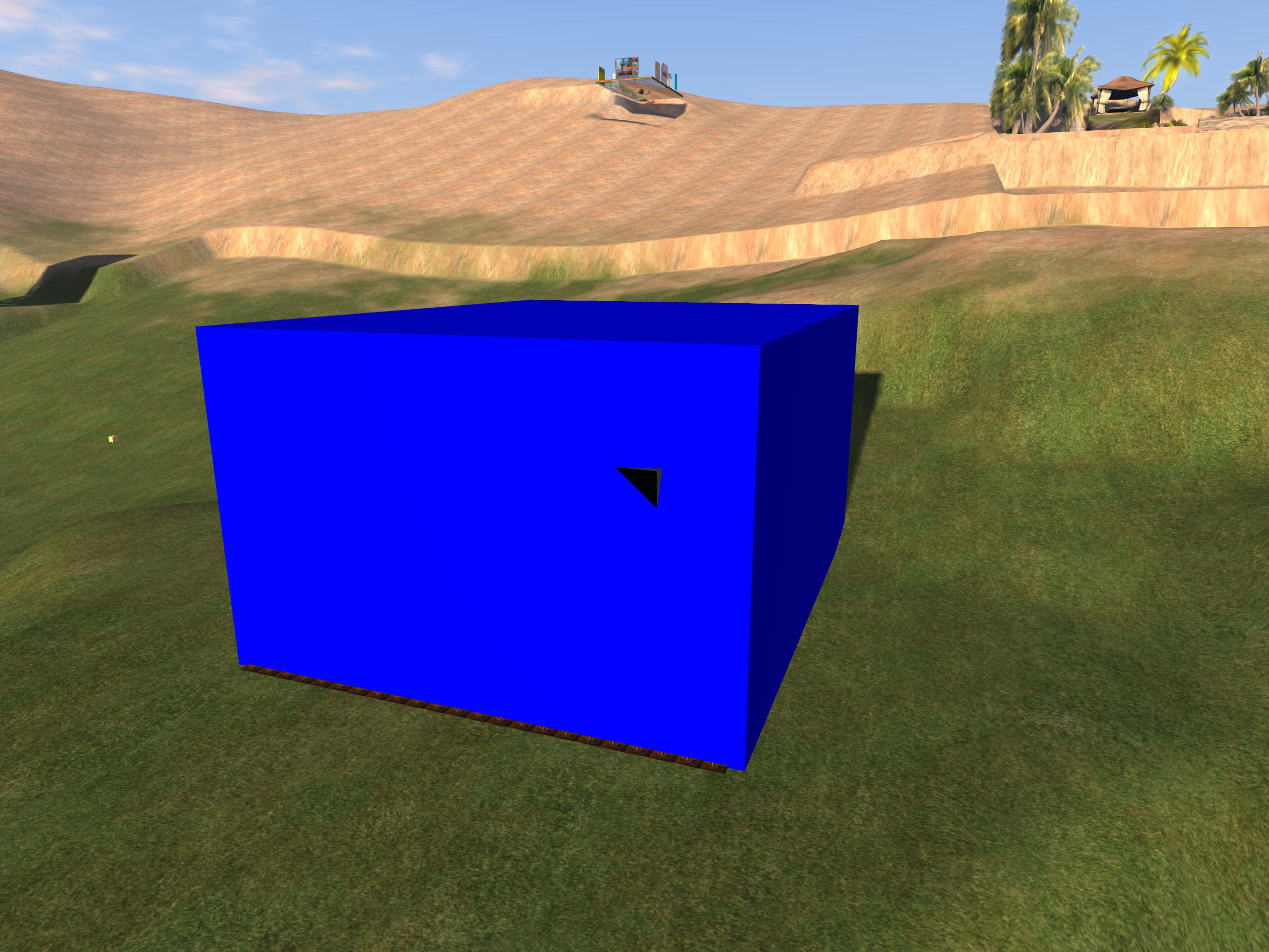 Baker was hopping around land parcels for sale through Lama Estates (as he sometimes does) and logs out right after encountering this blue cube in Varano on the Nautilus continent which appears very much like the one in Lynch’s Mulholland Drive movie. To reinforce its presence, when I log him back in the next time, the cube looms before Baker as he manifests. This *must* mean something, he rationalizes.