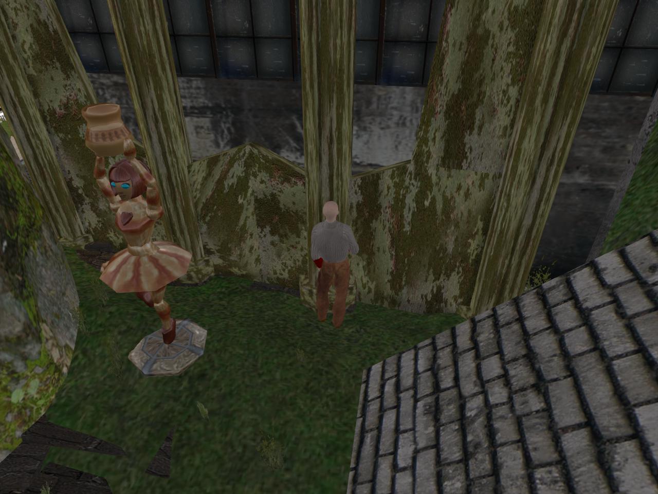 “It’s the colonnade. Baker B. put it there a couple of days ago. Baker B. created the *bars* a couple of days ago. And Starbuccaneers. And Gallery Jack. And this big rock you slept under or whatever you did. And also now he’s bringing back you apparently. Back from the dead.”