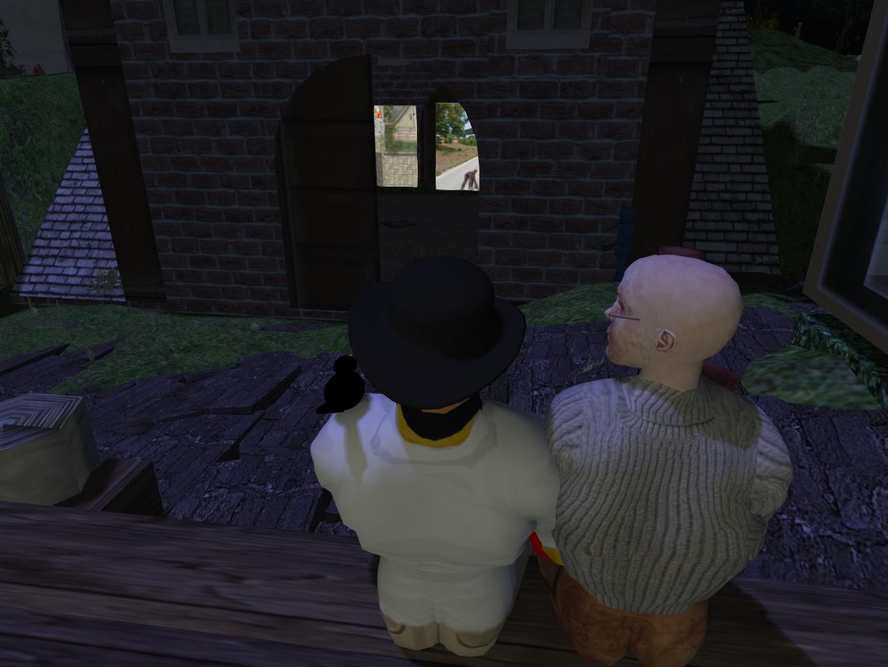 “What’s all the red buggers suddenly all over town? Place is infested with them, ow.” Space Ghost holds the side of his head with his free hand. “Darn headache. But I can make it up that hill, thank you. If I don’t trip over one of the red things on the way.” He starts to slowly climb the hill, and continues to complain. “Robots… back in the days we didn’t need machines to help us with our chores and such. We used our own arms and legs.” His son was now beside him, holding his arm and making sure he was stable.