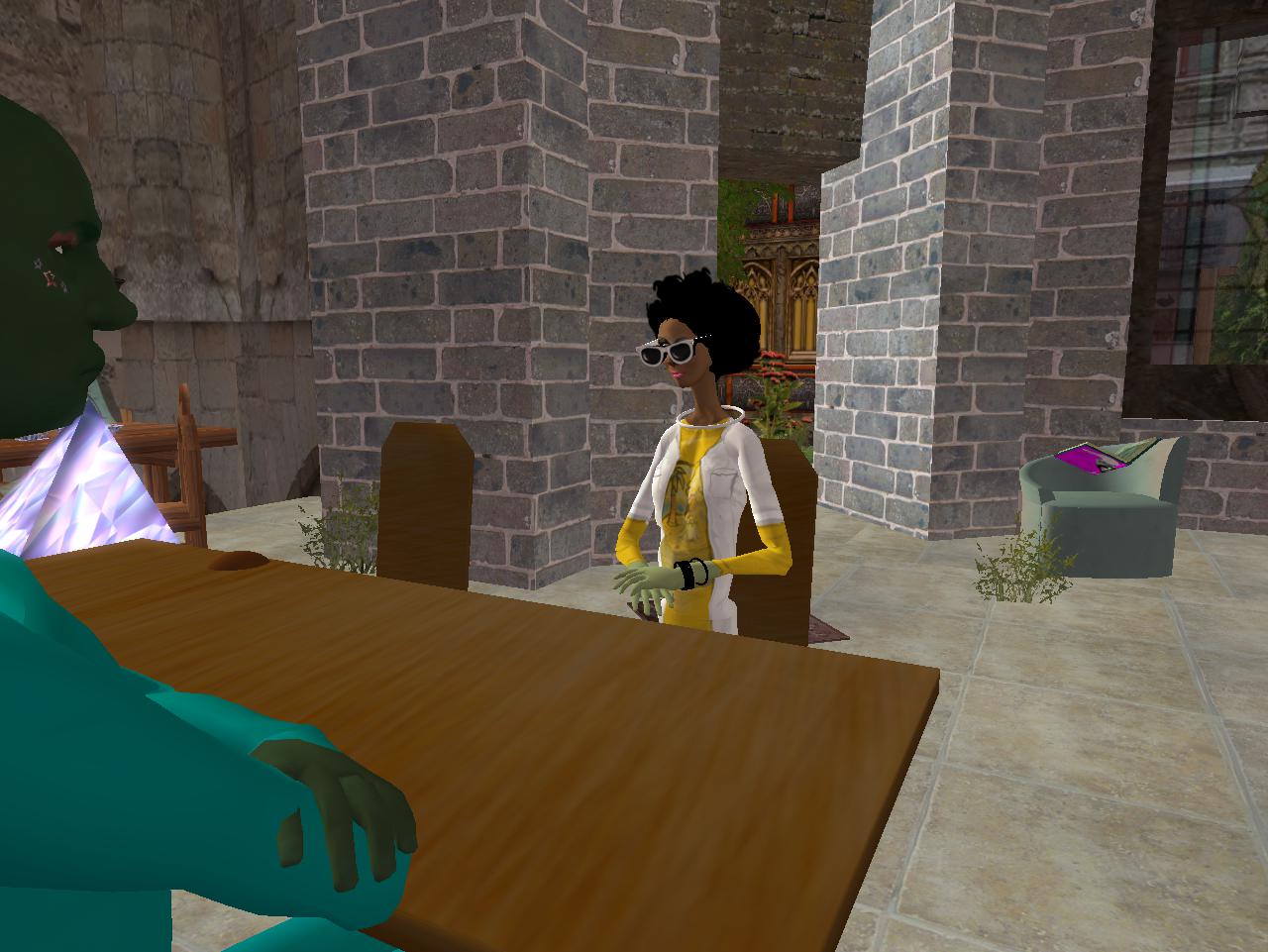 “I’m so sorry, Hucka Doobie. I went to the bar instead of the diner here. Carrcassonnee didn’t correct her speech in the blog until after I left. But the bar was closed — no sign of Furry Karl or anyone else there. I checked the portal very quickly to make sure it remained unblocked. I figured you were down here.”