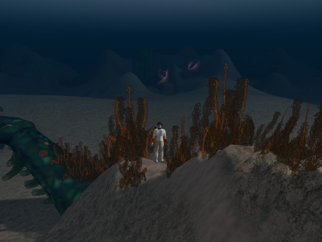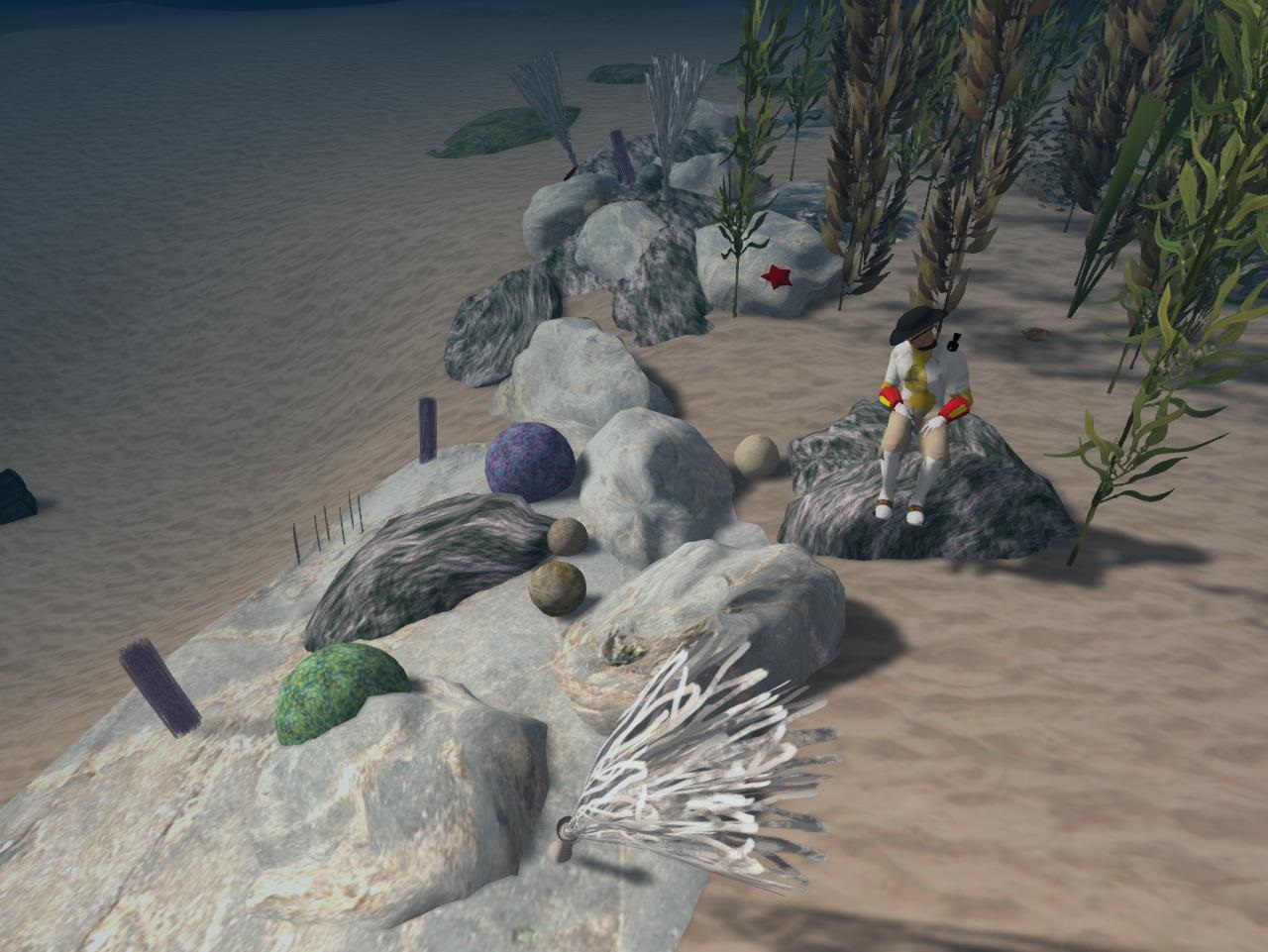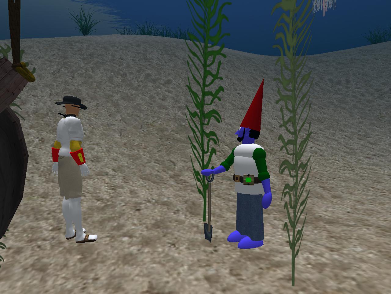 “And to take notes,” Baker realizes. “So the lamp will have to stay. Tell you what, let’s replace it with the standing Kubrick light like the one downstairs. Hold on and we’ll see how that looks…” Baker copies the standing lamp from downstairs and rezzes it between and behind Hucka Doobie’s and Curled Paper’s seats. “There. That could do.”