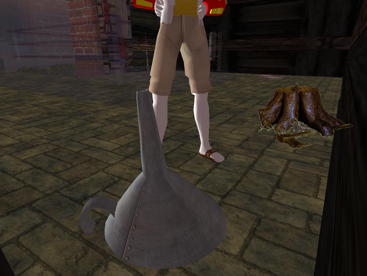 Hucka Doobie caught up with Baker Bloch, but, once again, couldn’t see him in this corner, even though she heard him. But both saw the projecting funnel hat.