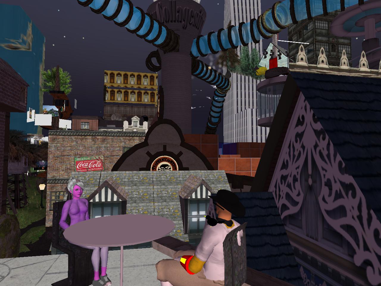 “I was walking around town after reducing the price of my land across Robin Lane a bit and checking the lag meter. I think Collagesity is too laggy. Here’s my idea. The 10×10 has a *presence* in the town, but there’s no need to display the whole thing. Use the Edwardston Station Gallery cube over in Rubi for that, and, backing up that, the one in Cayuga. Set up World of Collage in SoSo Mall, replacing your — *our* Wheeler-Jasper series. Get rid of the new building with Yale-Newton and Hidalgo. Just get rid of all the stuff prior to 2013. Focus on Fal Mouth, Power Tower, Boos, and Red Umbrella. And the new gallery developing in Castle Jack, whatever that is.”