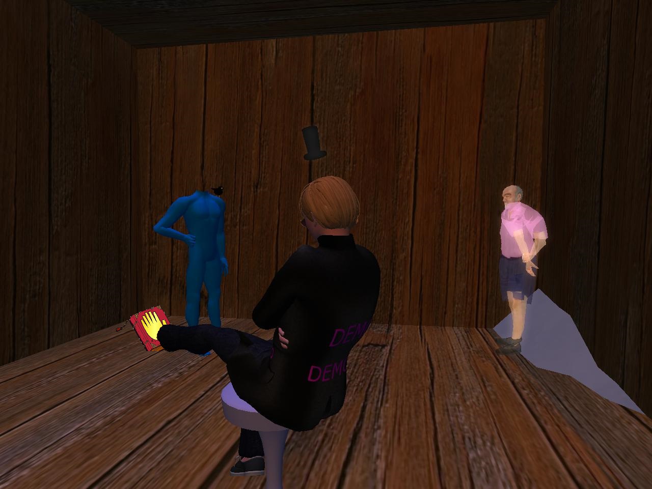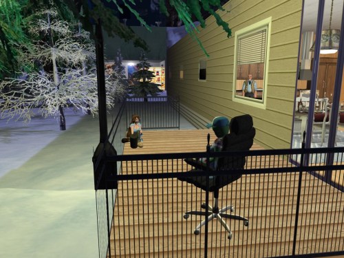 At the same time and 100 yards to the northwest, Wheeler tries to teleport back into her adopted Ayas cabin after buying a stack of books, a Lisa Simpson cutout, and some ice cream down the hill at Inferialist, but instead finds herself in a hidden space underneath.
