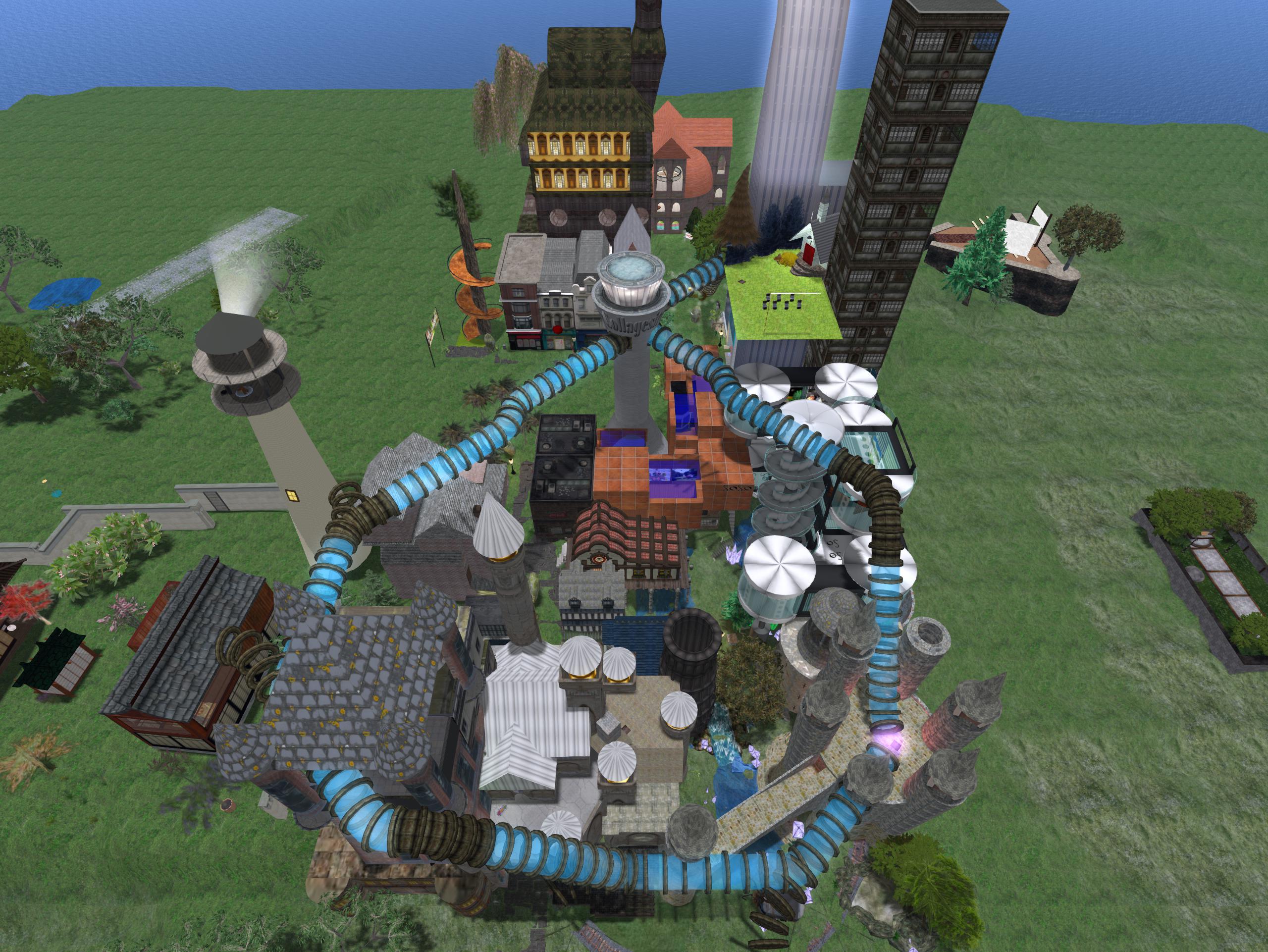 Collagesity North, started in late December 2016, is no more as of this writing. Key elements of that land, about 4600 square meters worth, have been incorporated into what’s left of Collagesity, about 10,000 square meters. These include shifting the Temple of TILE over to Art Oluja’s old parcel in the extreme western part of town (innards still being worked on)…