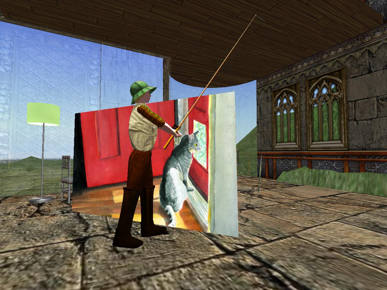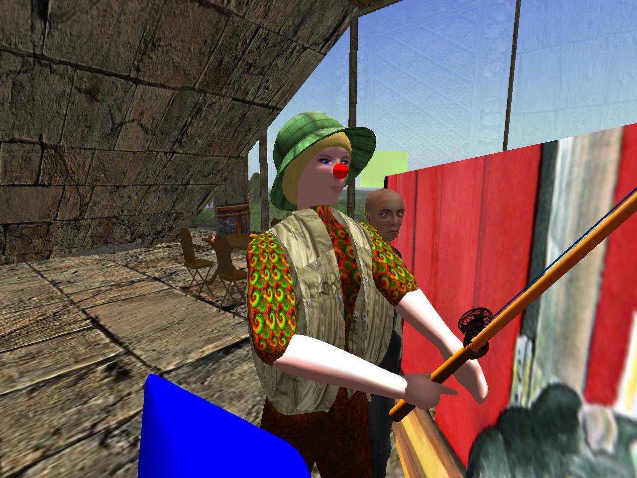 “Musician, go over there to Collagesity West and change that Gloomy Gus into convex hulls. That should do the trick.” She returns her attention to Chuckles Greentop. “25 prims, Ms. Fisherman,” Wheeler scolds. “You come at a pretty price!”