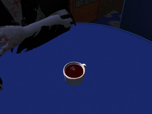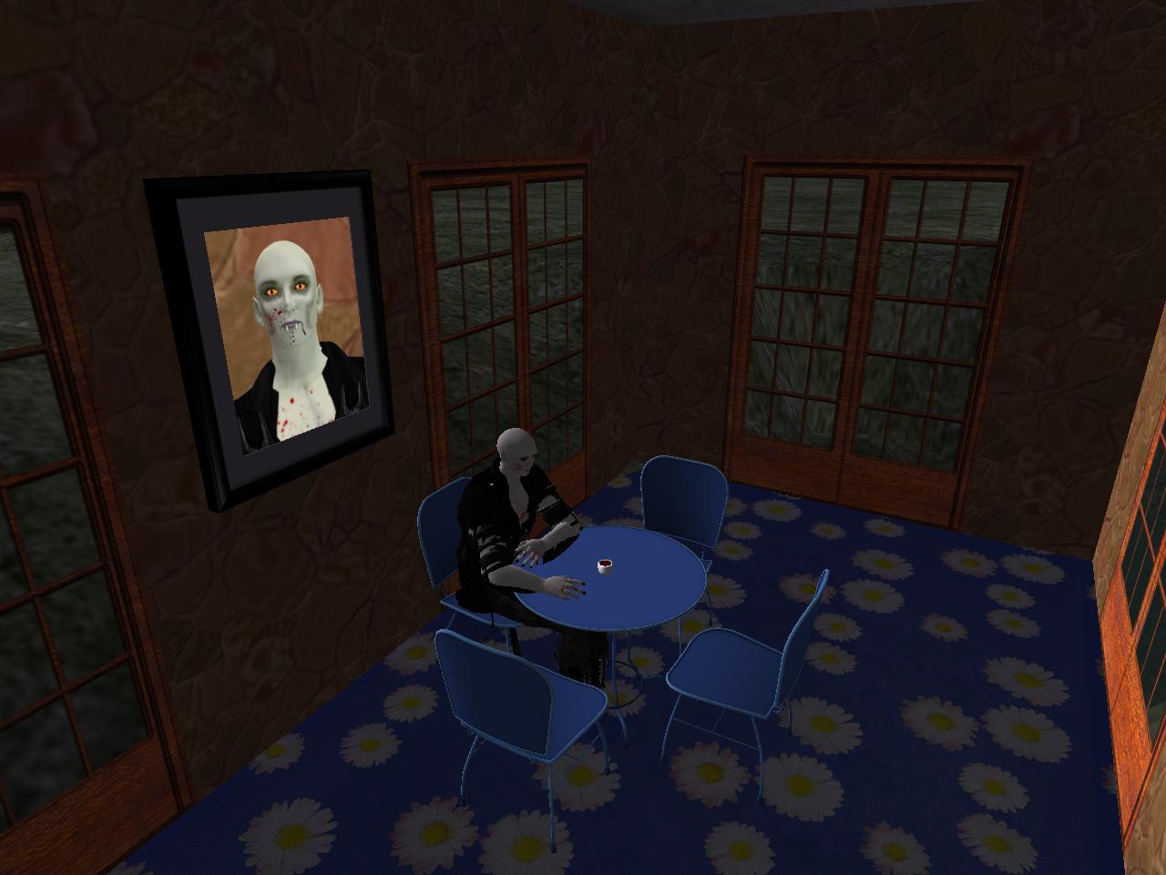 Across the tracks in a tiny two story house, a fly got stuck in Pitch Darkly’s wine red nightcap.