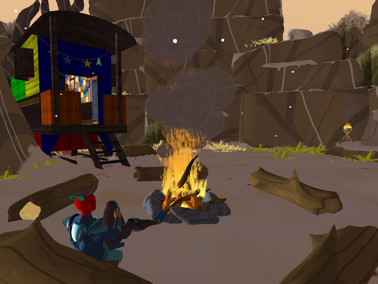 Wheeler rolled over on her couch at the far end of the caravan and took in the spectacle. Smoke was billowing up from the floor at the upper corner of The Musician’s hobo mattress, right where his head is usually positioned. Outside through the door: fire itself. This place where they had been “living” for several days appeared not to be in the secret Muff-Bermingham Room of VHC City any longer. And they weren’t clowns — and with no other clowns passed out from the night before strewn about the place as per usual. The smell of scorched plastic was in the air.