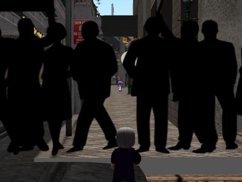 He spotted her between 2 groups of silhouetted protesters. She didn’t appear to him like she did to other people, like to her best friend and co-worker Nancy, for instance. He saw her for who she really was. A being as dead as himself. Perhaps moreso.