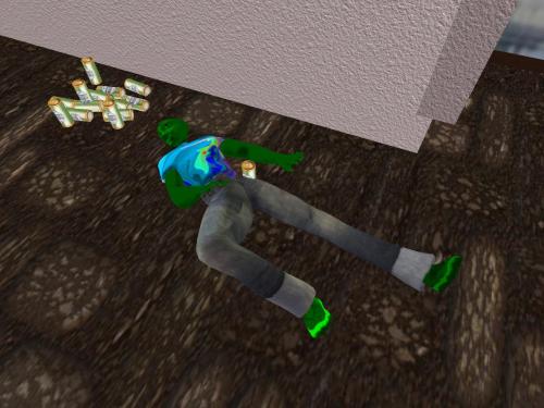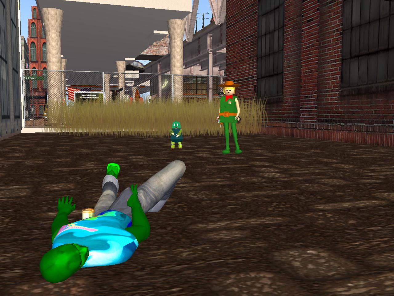 Turns out Casey the Alien was only passed out drunk and not dead. Being of suspicious color, though, he got pinned with the O’Donnell murder. 15 years later he was again free to roam the streets of OLT and immediately went to the sheriff’s office and thanked him and his deputy for their support during the trial. “The mob will have their way,” he said, which made both law officers nod their geometric heads.