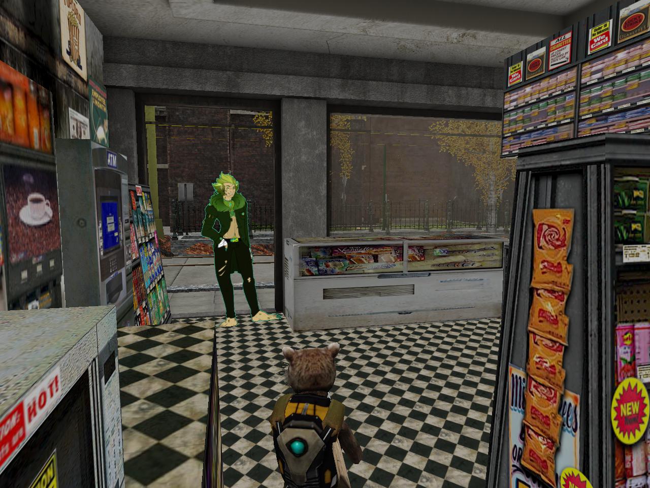 “Whoa, chill there Mr. R. It’s just me. Terry. The guy you hired to replace the comedian, getting off his shift. You didn’t drive him away by trying to shoot him too, did ya?”