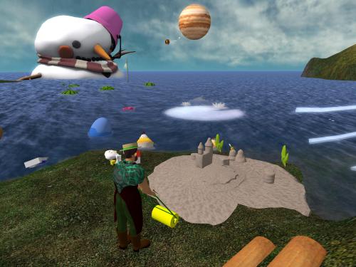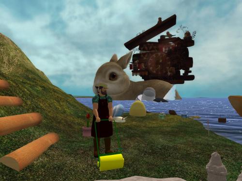 Jacob the Lawnmower was trimming and harvesting the grass around the highest sand dune with the castle when suddenly he was someplace else altogether.