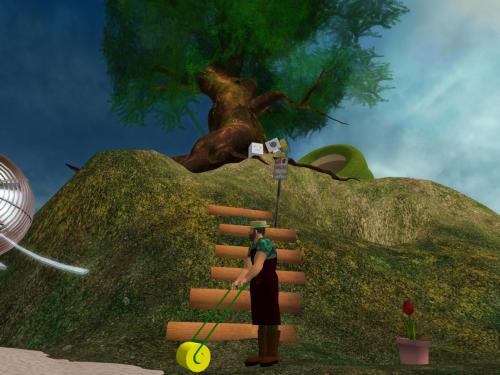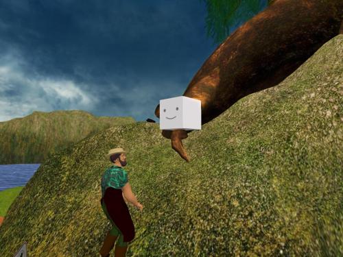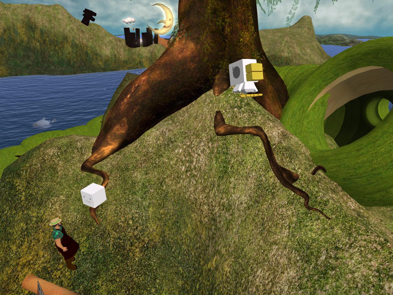 He derezzes the now useless mower and heads up to the tree, trying to gain perspective.