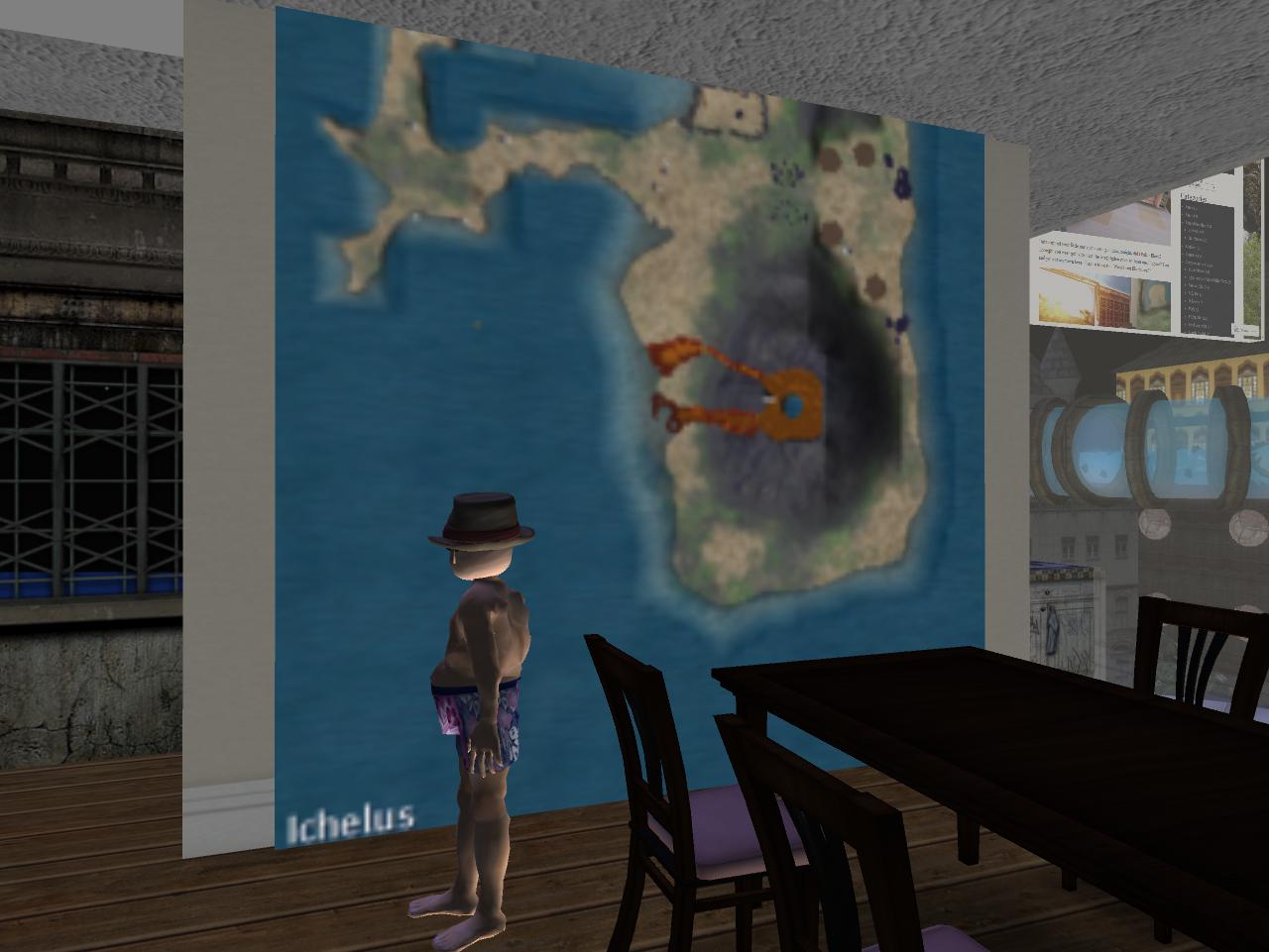 Now Mr. Babyface really likes Simple Wunderlich’s snapshot from Ichelus upstairs, depicting its famous volcano. He makes a note to visit soon, perhaps even before he returns to Hana Lei. The picture corresponds with the sim map here as well.
