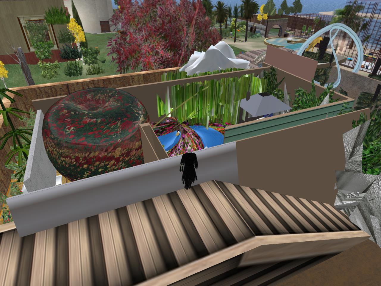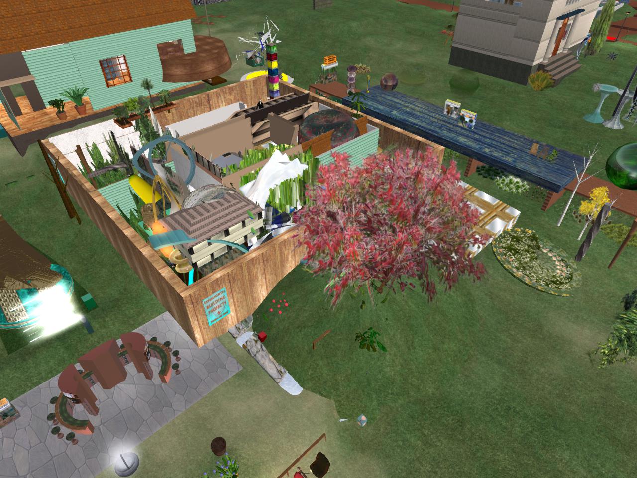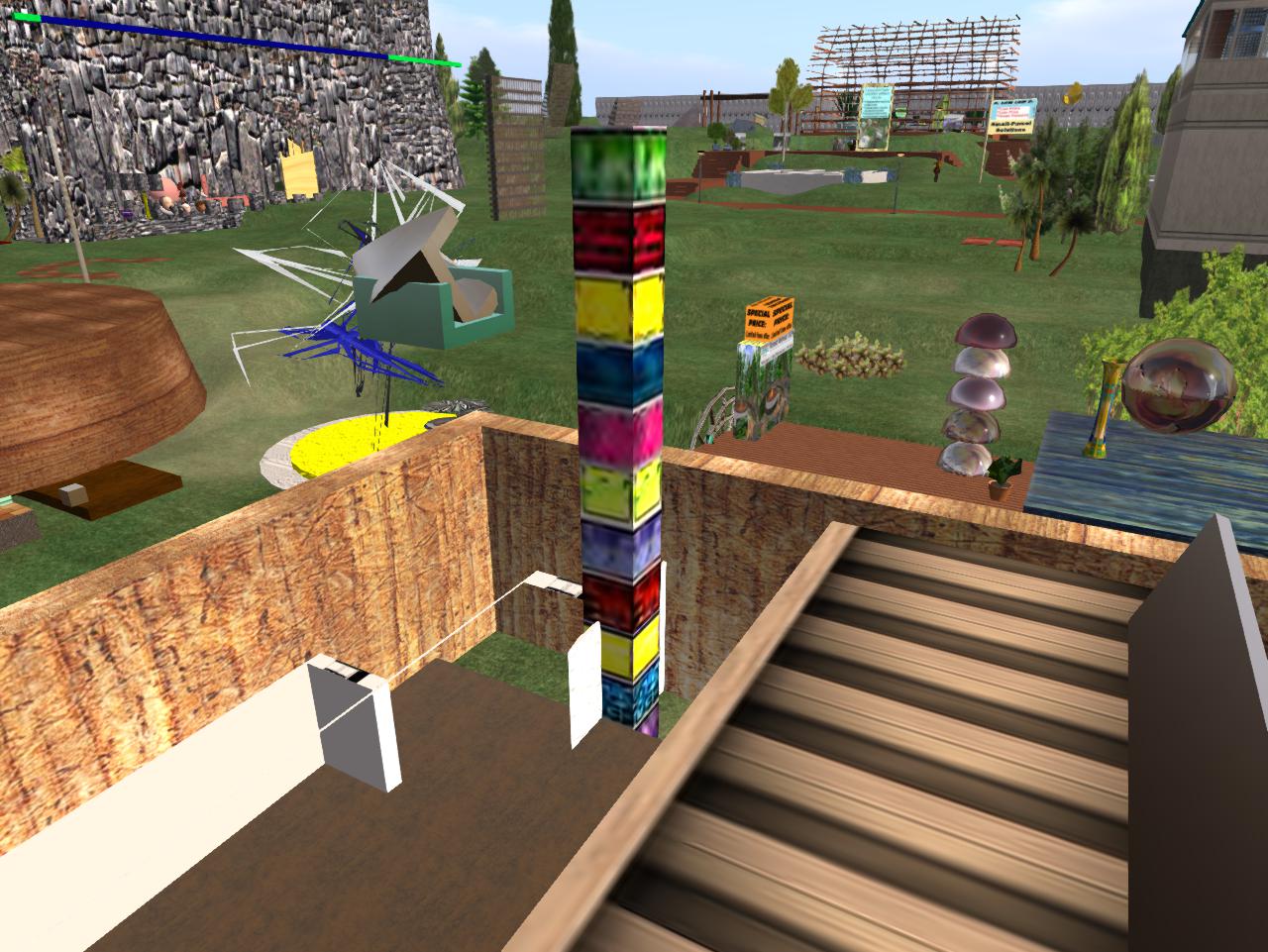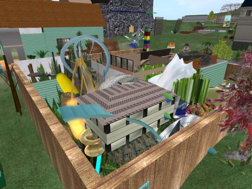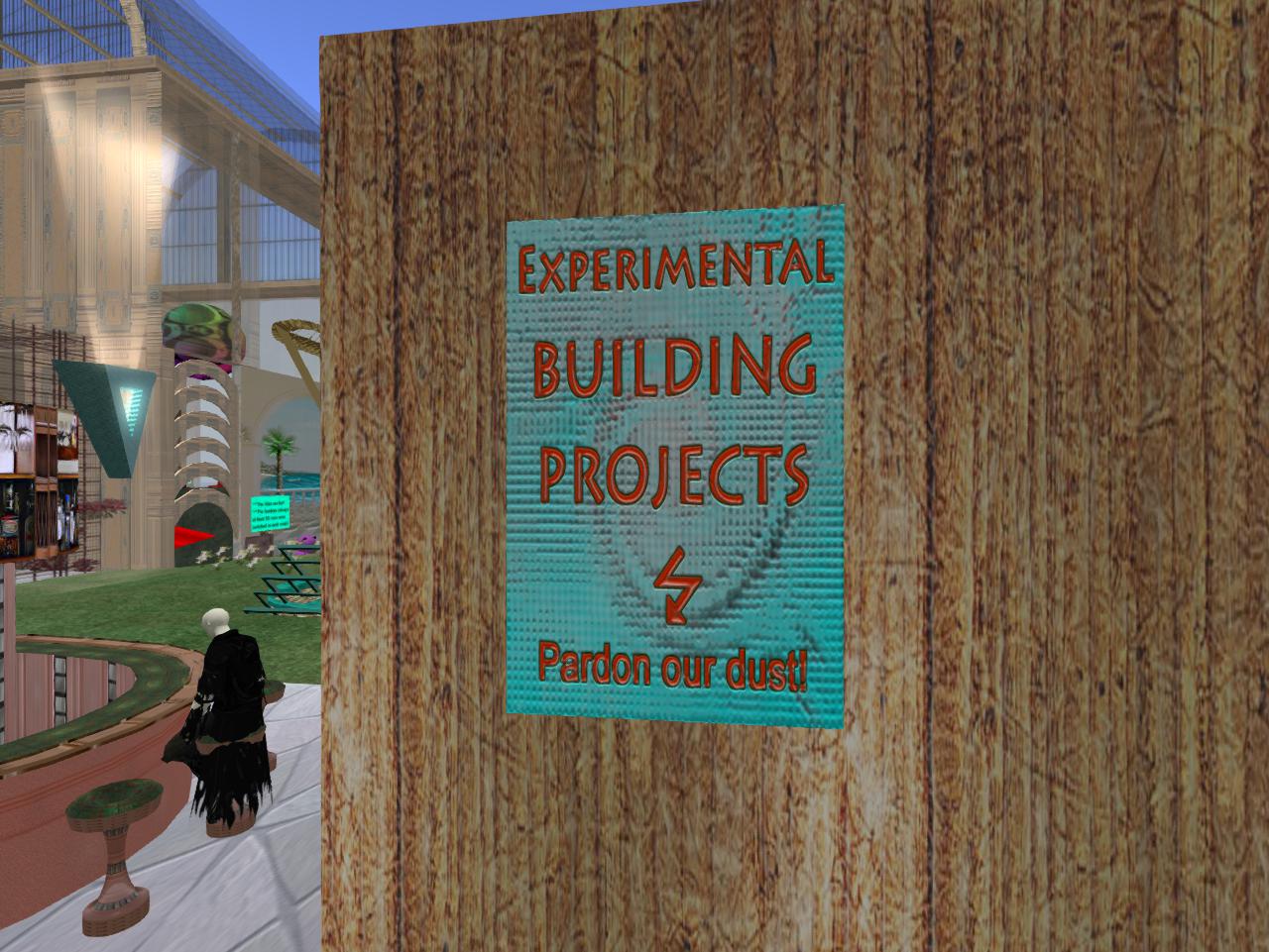 According to these signs adorning the surrounding square shaped wall in all 4 of its corners, the fenced-in region of approx. 1024 meters (32 x 32 meters) holds what are apparently experimental building projects, with apologies given for the involved dust. You can actually buy the wall and attached signs for 50 lindens. Pitch is tempted…