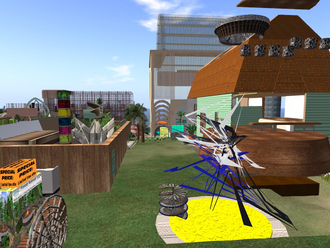 Pitch Darkly teleports into the centre of Clemscott. As he knew from previous visits, the owner of the sim had marked the spot with a grassy, oval lozenge. This Clem fellow. Clem Scott maybe. Smart like a Fox.