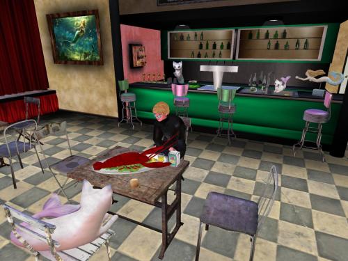 “I’m Catvas II, actually,” the feline across from her corrected while purring over the dinner. “You can tell the difference by my fishtail, which Catvas I doesn’t have. Instead she has the wings of a bird. In truth, The Bill, I think you might be losing your grip. The chess battle is turning your mind soft and fuzzy, like Stan over there.” Catvas II nods toward the hairier cat washing dishes tonight. “I suggest: withdraw from the match. If black wins, that might also be the end of *you*.”