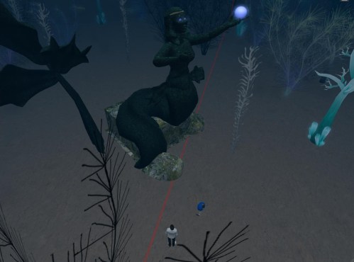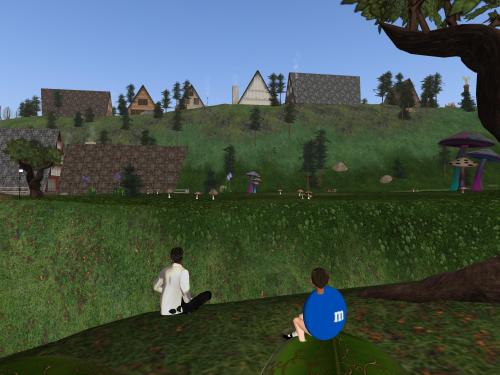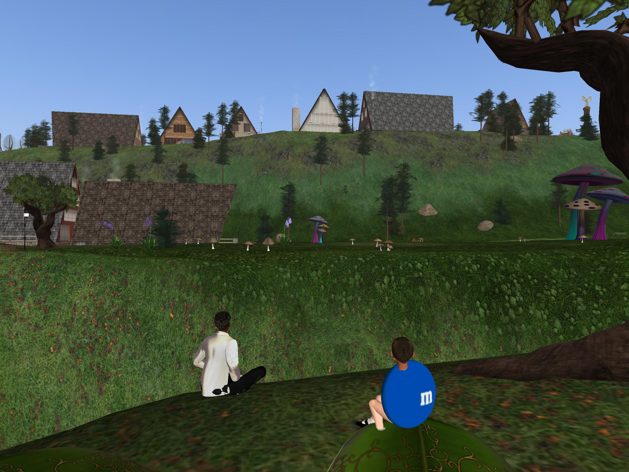 “So you see Campbell O’Pine. Here at the edge of Misacs, for instance, we also have the beginning of the end of Our Second Lyfe. That gain in elevation over there in, let’s see (Sidechick checks his inworld map), Bushchat, is more than just that. It gives us perspective upon the basically flat 8×8 of the themed house regions preceding it, The Perfection. With the essentially endless repetition of these houses beyond, the Linden peoples are drilling in the message that Our Second Life is not the be all end all of virtual reality. More is around the bend. And that’s where the Corrigan statues come into play, especially the Queen’s. Are you ready?”