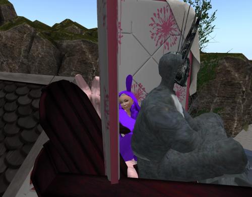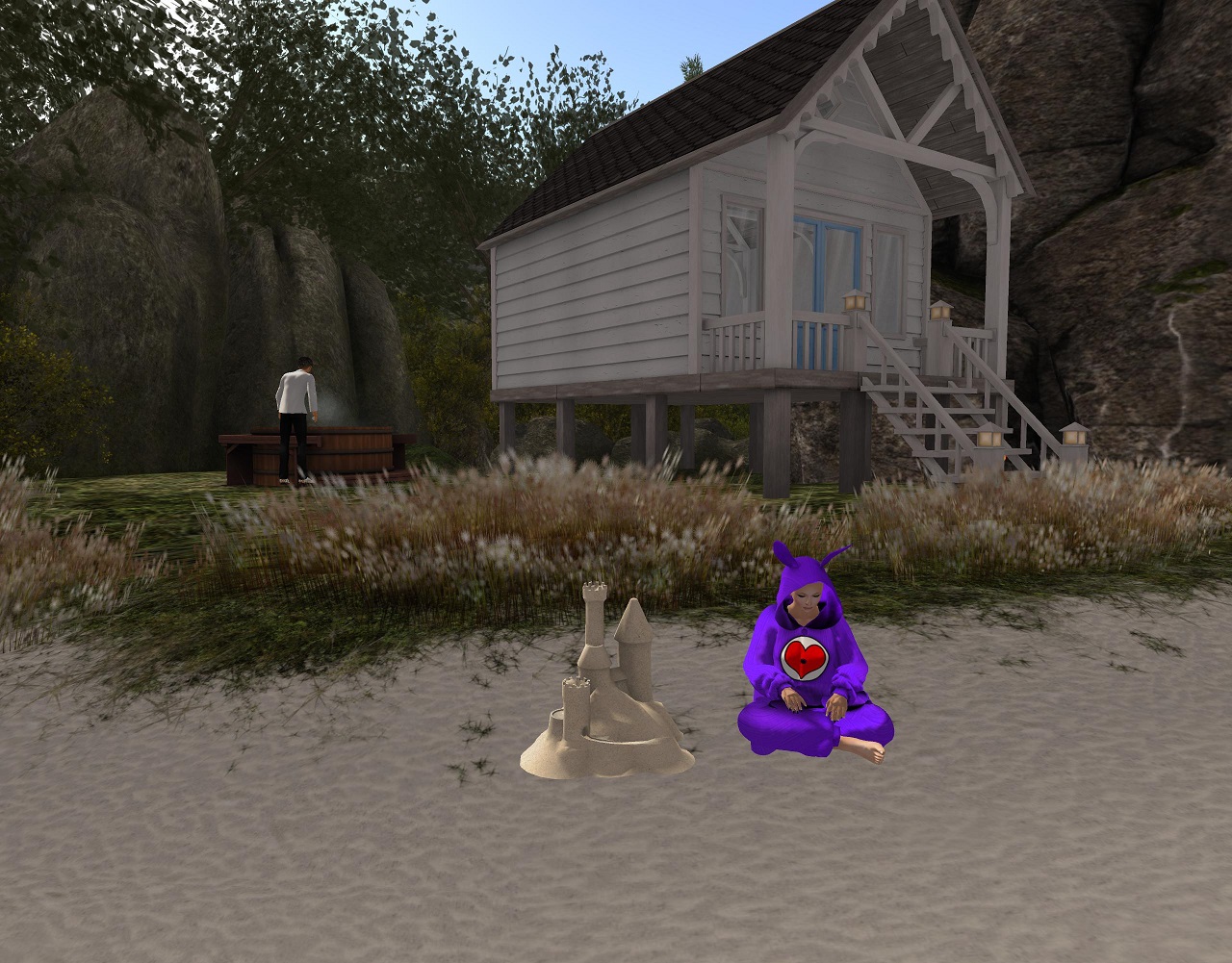 Later in the day only the, er, grownups remained. Paris was playing with Rabbit 03/Rabbid down at the beach, making sure he didn’t wade into the water over his head. But he failed in his mission a couple of times. He obviously didn’t tell his mothers this.