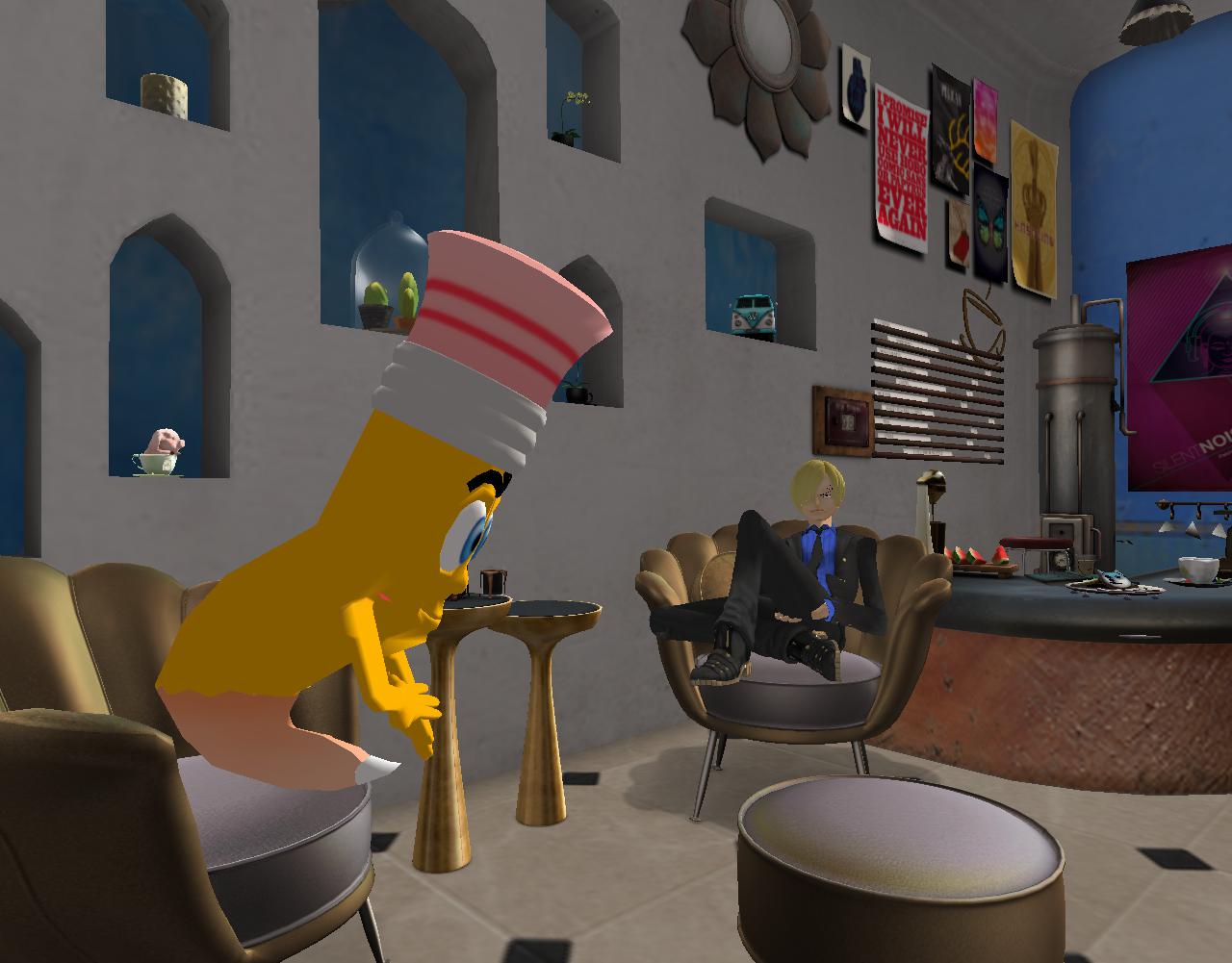 “No Sandy, I want to stop you right there. That’s a mythological term borrowed from your source character. Hmm…” EM repeatedly snaps his stubby yellow fingers, trying to get the name. “Sanji,” he comes up with. “Yeah. But your character is different. Just like Frank *borrows* from both Frank of ‘Donnie Darko’ — love that film, by the way — and also Frank Bowers of the ‘Life is Strange’ production. Another great work, especially using certain edits. That series gave me the idea for multiple plot lines diverging off from each other.” EM here raises his hands in front of him and spreads his fingers out.