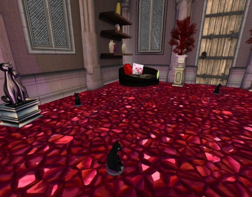 The many cats on or around the ruby floor became agitated, with some starting to dart about aimlessly.
