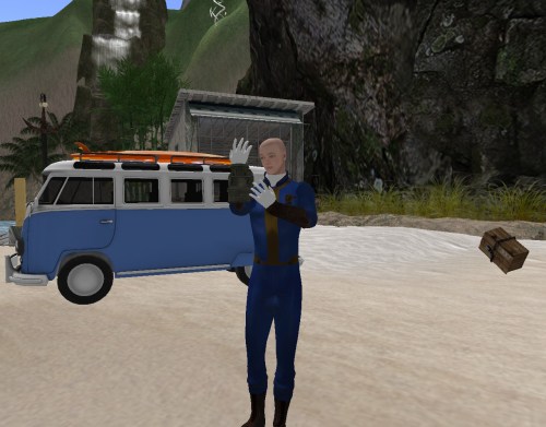 Fallout Guy spoke into the Pipboy 3000 attached to his right forearm. “No additional synchromystic activity noted on the Magenta Girls’ peninsula at The Straight.” He pauses, then: “One additional note. The sim the peninsula is located within is Girenzi, which in Our Second Lyfe is presently followed by sims Girl and then Girls. The property at the tip of the peninsula is called Bad Girls. That is all.”