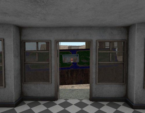 … when he noticed the hole across the road. Let’s see, he realized, that would be just beyond the southwest corner of Burnt Oak… like Sparky’s is just beyond the northeast corner of same. I wonder if the two gas station owners — good and evil — planned it that way, Monsieur Gold pondered. Almost a perfect opposition. And both are *missing* now.