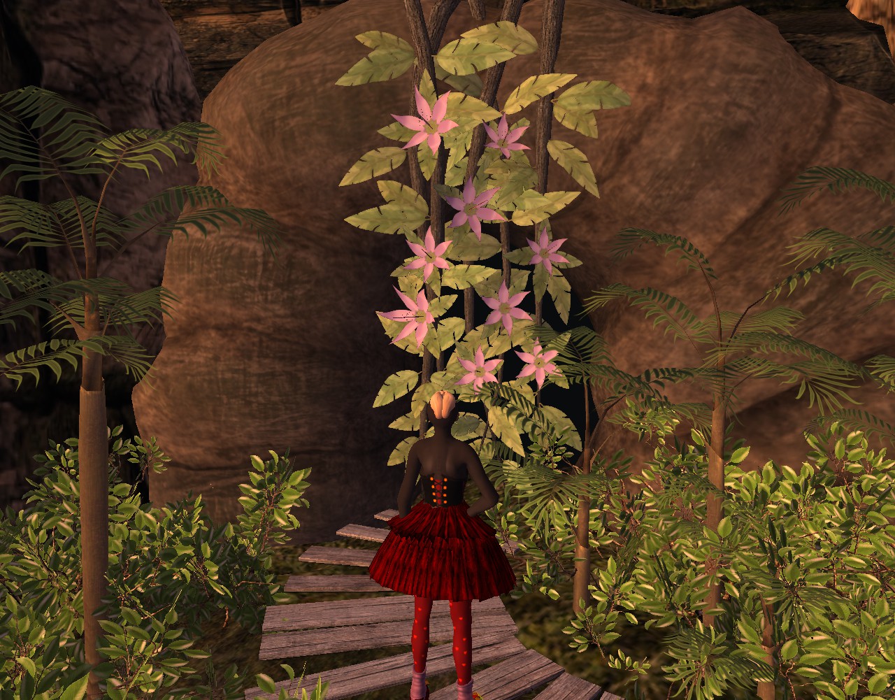 “*Noooo.*” But: yes, Ruby Fantasie had to come out to get further instructions from the tree. At the centre of the sim (Fruity Islands). She wasn’t going to let Baker know that, however. She splits in two.