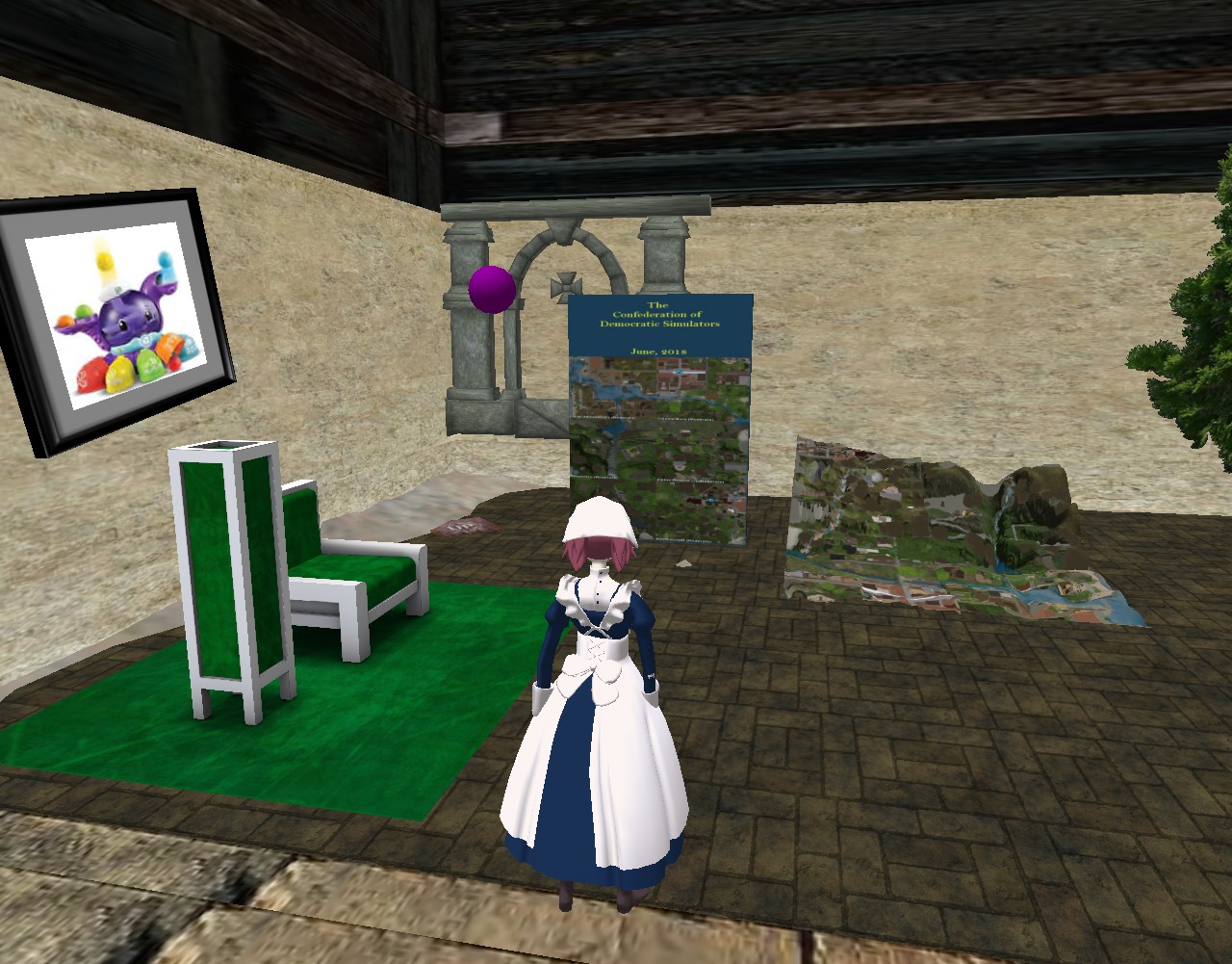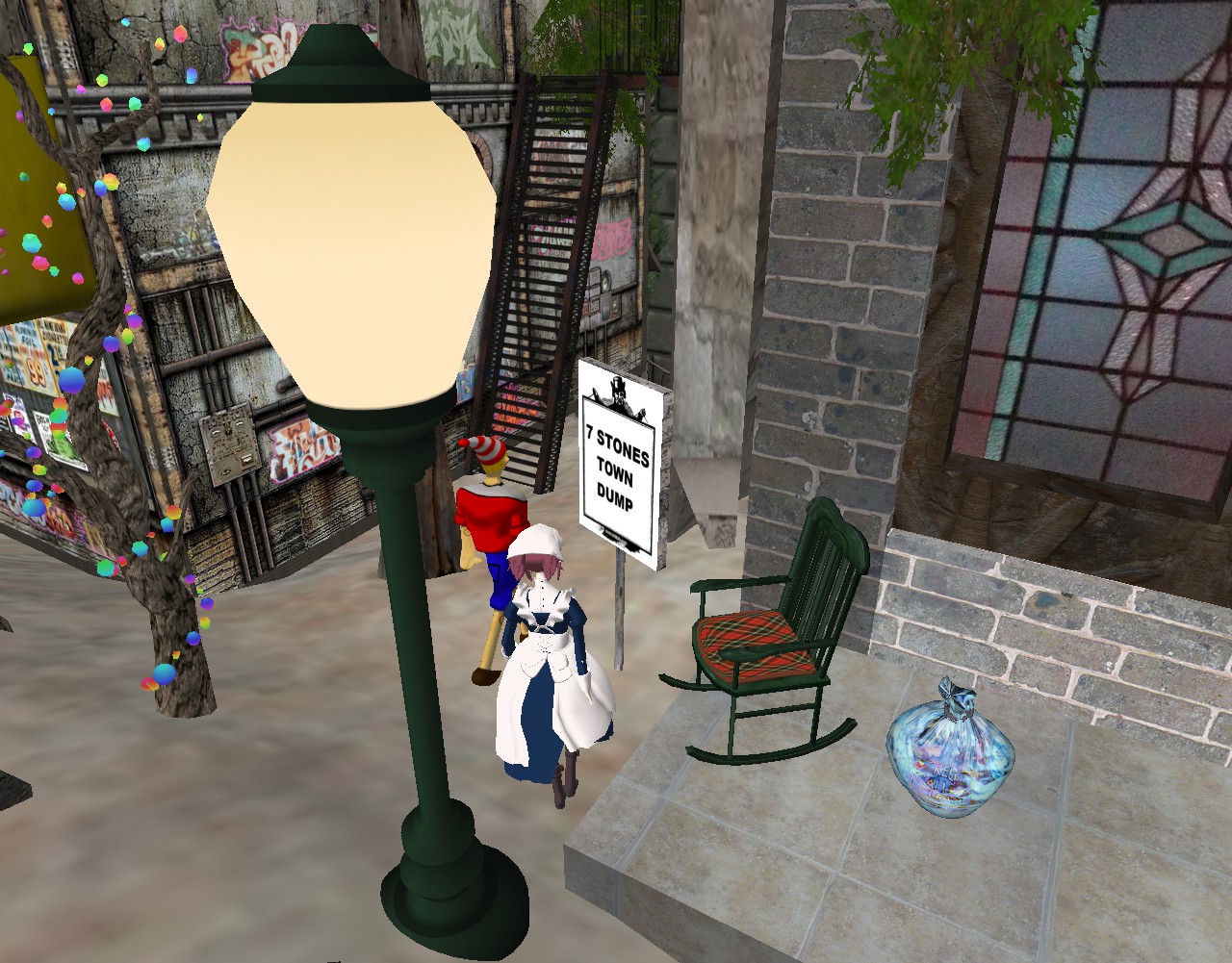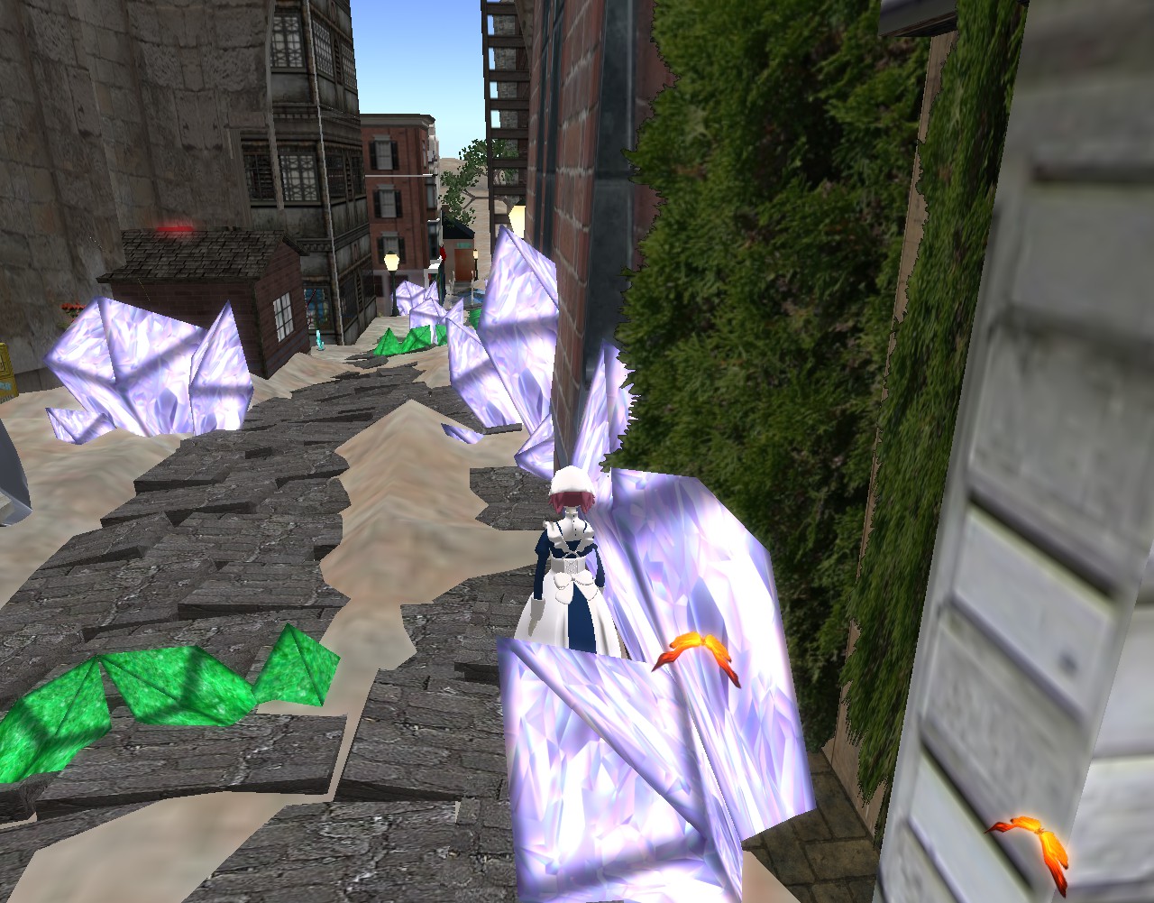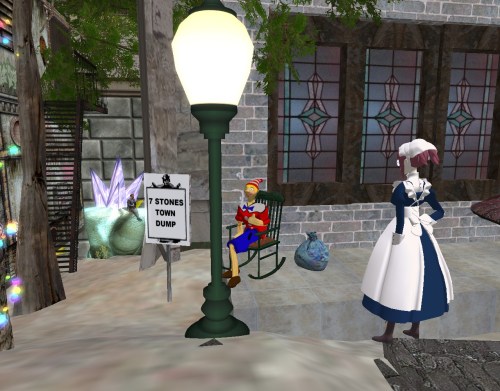 Oh me Gods, she thinks. The crystals are back, pheh. I suppose that’s what you get for having a wooden toy decorate your town now. On cue, Woody pops into view across the street, first a glowing white ovoid, then himself. He was sitting in a rocking chair, looking smug and proud as usual. And that voice (!) She must brace herself.