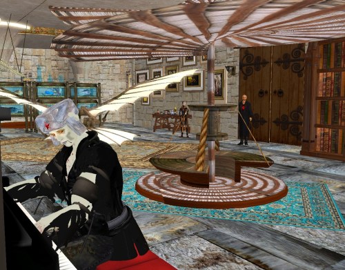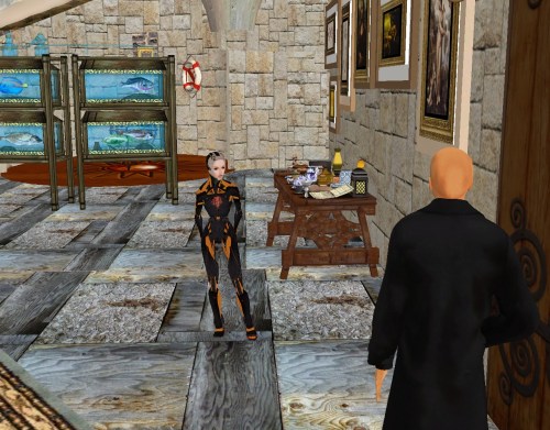 “And good to see you too(!). I got here the same way everybody does. By logging in and changing clothes if needed.” Axis inspects Teebestia more carefully. “But, hmm, I see you don’t have that need. The logging in, I mean. You are just a prop!”