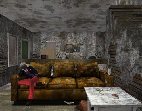 It was almost a perfect sim, what with its trash and gutter filth. Very realistic; a perfect place to meet… someone. And the Oracle predicted its importance: Hidden Vilage (etc.). But she must return and merge with the other Hucka Doobie, the one that didn’t get this far. She knew that.