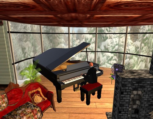 Meanwhile in Sansara’s Snowlands, Herbert Gold was checking out the location of his newly set up house/mansion over there. “Piano,” he declared, sitting down at it. “Just like Baker Bloch said it was.” He played a tune he thought would cheer him up. *Not* a Booger Hayes piece. He’d learned his lesson on that.
