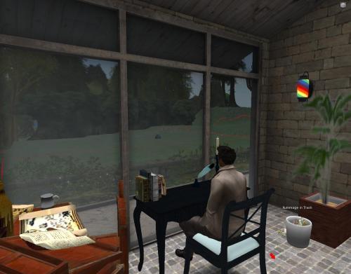 We catch up with Barry X. Vampire in Urqhart, not far from Instabar on the Corsica continent atall. Like anyone who lives long enough, vampires obviously included, Barry has turned to novel writing to try to explain the inner life he sees mirrored in the outer life all around him. Recent killings in Instabar, actually, have planted the seeds for his next inspiration, centered on a *man* named Larch who was at the center of it all. In reading about the deaths in the local newspaper and then researching the guy, Barry X. quickly found out that the lone pick in his profile was the Loch Ness Inn in a Scottish Highland related sim, with the description simply reading, “Old Country.” Sounds like his kind of place. He teleports over…