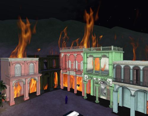 An offshoot fireball of the explosion hit Strange Isle, destroying it in the night as the hamlet’s lone inhabitant looks on helpless.