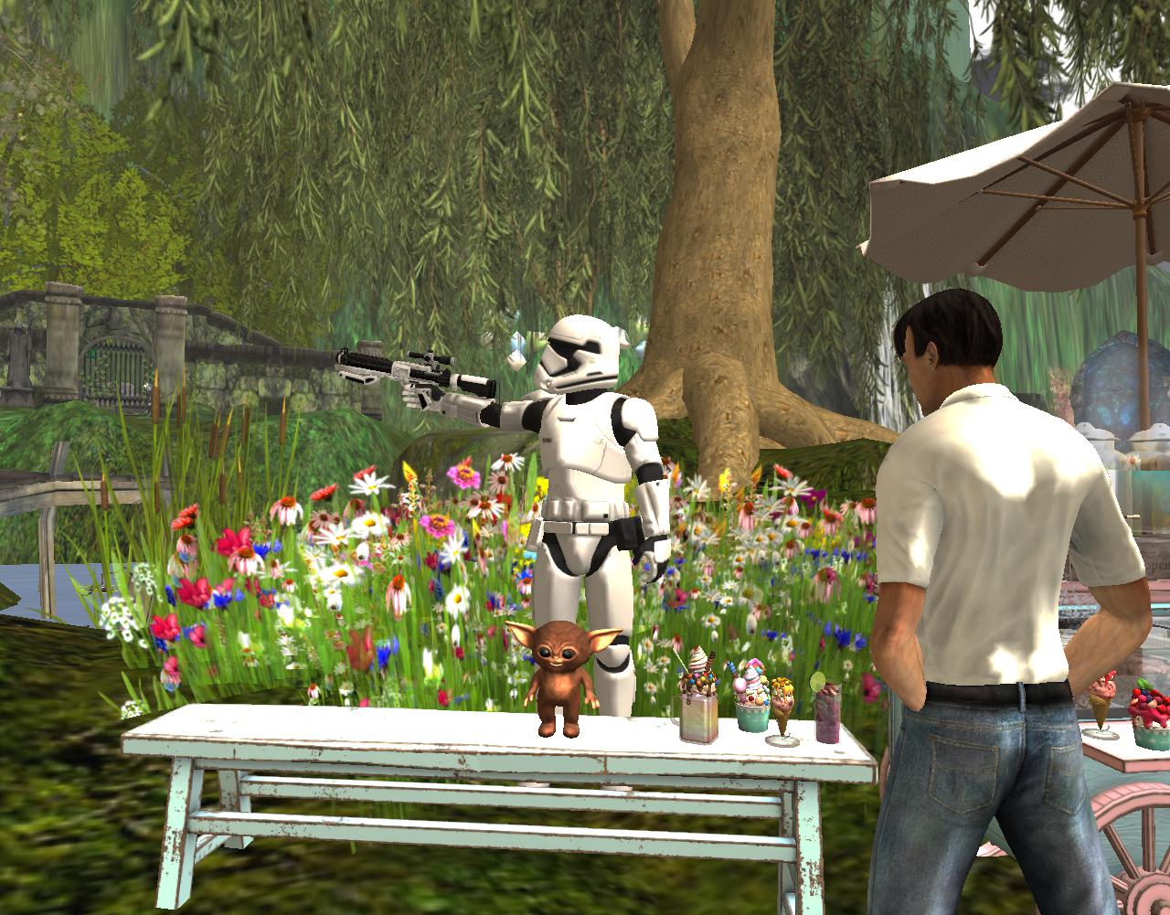 “Is that a Baby Yodo?” questions Sandman, distracted by creature directly beneath him on the table. “So adorable.”