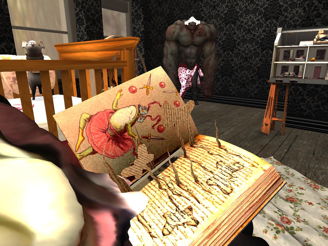 Before heading over to the only real grown up person in the room as far as I could tell, I studied The Munsters a bit more, puzzled by their red Rudolph noses. The mounted rats Rock, Paper — er, Paper, Scissors, Rock — I think — represented a riddle too, a cypher. Better ask the Grandma about it. If this was such person.