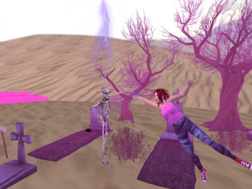 Duncan was, of course, glad of the new assignment from the Pot-D powers that be. Which meant essentially: Buster Damm, his “boss” for several years now. Gave him his red skeleton heart medallion hung on a necklace for tracking purposes and sent him off to parts unknown, or at least for Duncan. Now he was needed again. In the briefing, he’d learned that other black people were involved in this here photo-novel. Good! “‘Bout time,” he said to the small vampire staring across from him at the VHC City bakery where they always met, no exceptions. Because it was away from the Sister sim, where Buster was banned. And Bemberg, the other sim which made up most of the rest of VHC City: off-limits as well for other reasons. Tussock it is, and no need to hide the actual name of the sim there either.