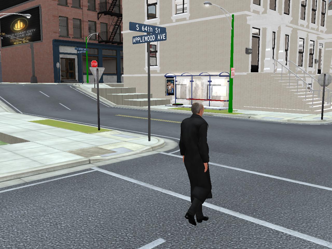 At the midway point up in the sim, Newt turns left from 64th onto Southbridge, hoping to get more answers tonight.