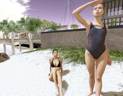 “Medium build, medium height, wearing a black bathing suit. Any idea?”