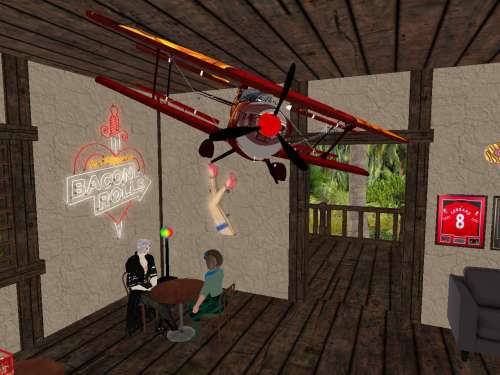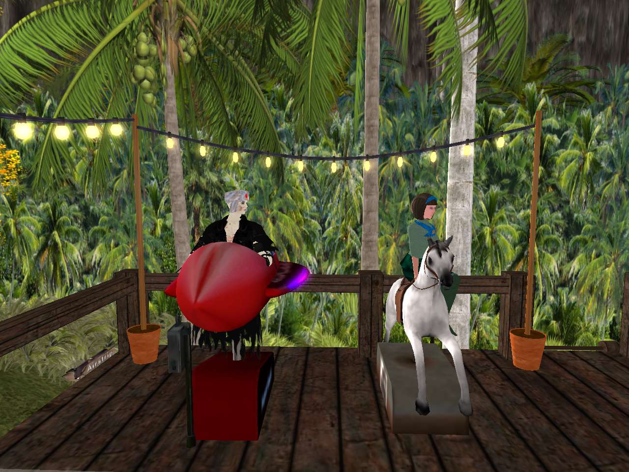 She went to talk to Willy Wonka in the past present future to give him a piece of her mind, dodging big piles of elephant doo all along the way. They met at the south end of the property, where we’ve been before, CROOKED in clear sight through an opening between palm trees and rocks. “You *don’t* understand,” she complained while indicating. “Those are *historic* buildings over there.” “That *junk*?” he reiterated, trying to think of new and more effective ways to derender all that for his fancy smancy artsy fartsy photos. “It looks like, I don’t know, a giant kid ate a whole bunch of tinker toys and legos and then threw up.” “*Moard* *Ling*”, she kept defending. “You’ll never hold a candle to him… Wonka.” It took a while but she had learned to respect the prolific prim creator, stuck in the past but with lessons to teach. Sometimes the past is better, at least in part, in ways. This is what she learned from Constantynople, soon to be no more here. She was about to have her last pass through it. She spotted the purple garbed guy — another *former* after all, another one living in the past. Why can’t he *see*?