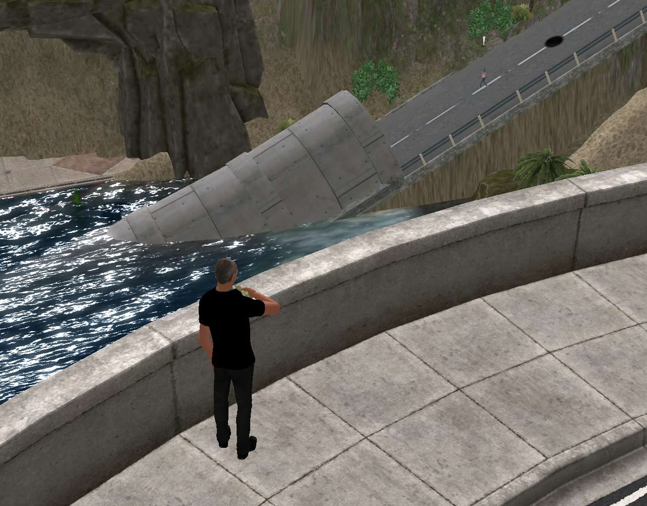 Welp, there she goes again, thinks Newt, sipping on a recently procured nice cool lemonade drink courtesy of a boy named Bart. Back into the tunnel. Guess I better get back to the home base myself, start working on that skybox and maybe the rezzing of that larger version of Howl’s Moving Castle I have in my inventory. Must not forget the Yellow Guy. Or the Red Man or the Green Dude or the Blue Boy for that matter. “Frank’s Moving Mountain” which is kind of the same as “Howl’s Moving Castle” is a way to keep moving forward on that subject.